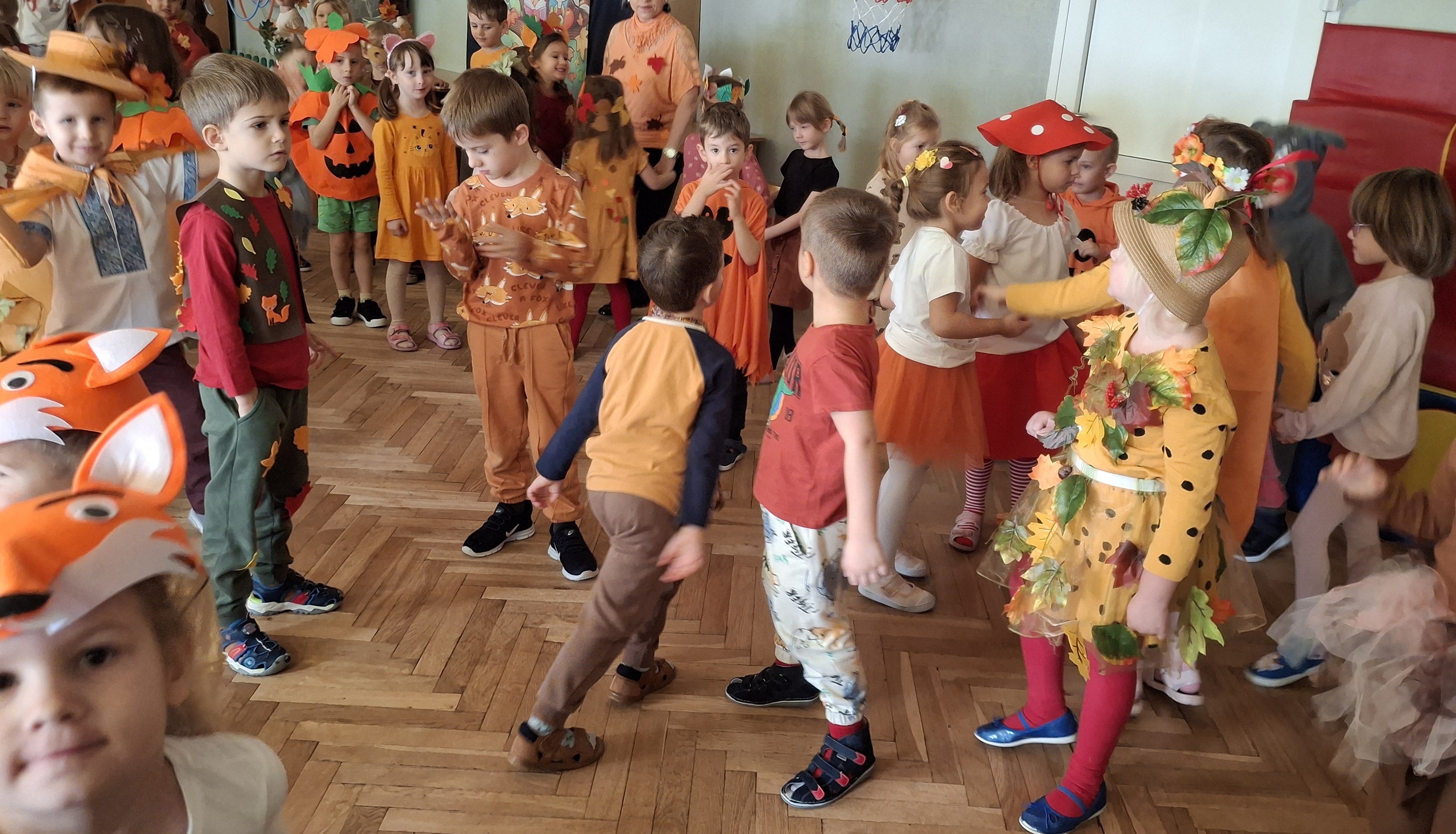 Dziś wszystkie grupy miały bal. Wyjątkowy bo był to Bal Jesieni. Wszyscy w pięknych, jesiennych strojach doskonale bawili się podczas zabaw związanych z tą kolorową porą roku. Na koniec odbył się quiz jesiennej wiedzy.