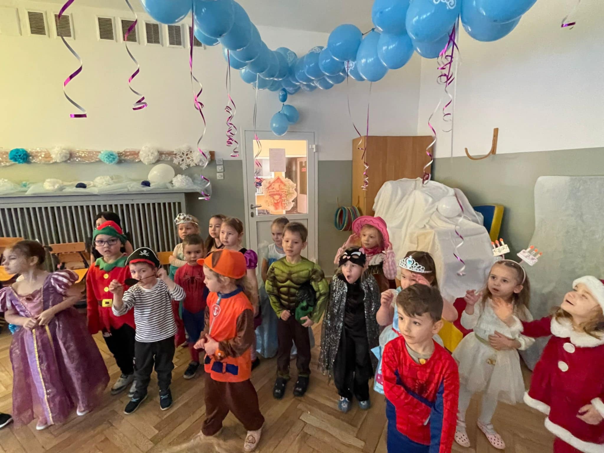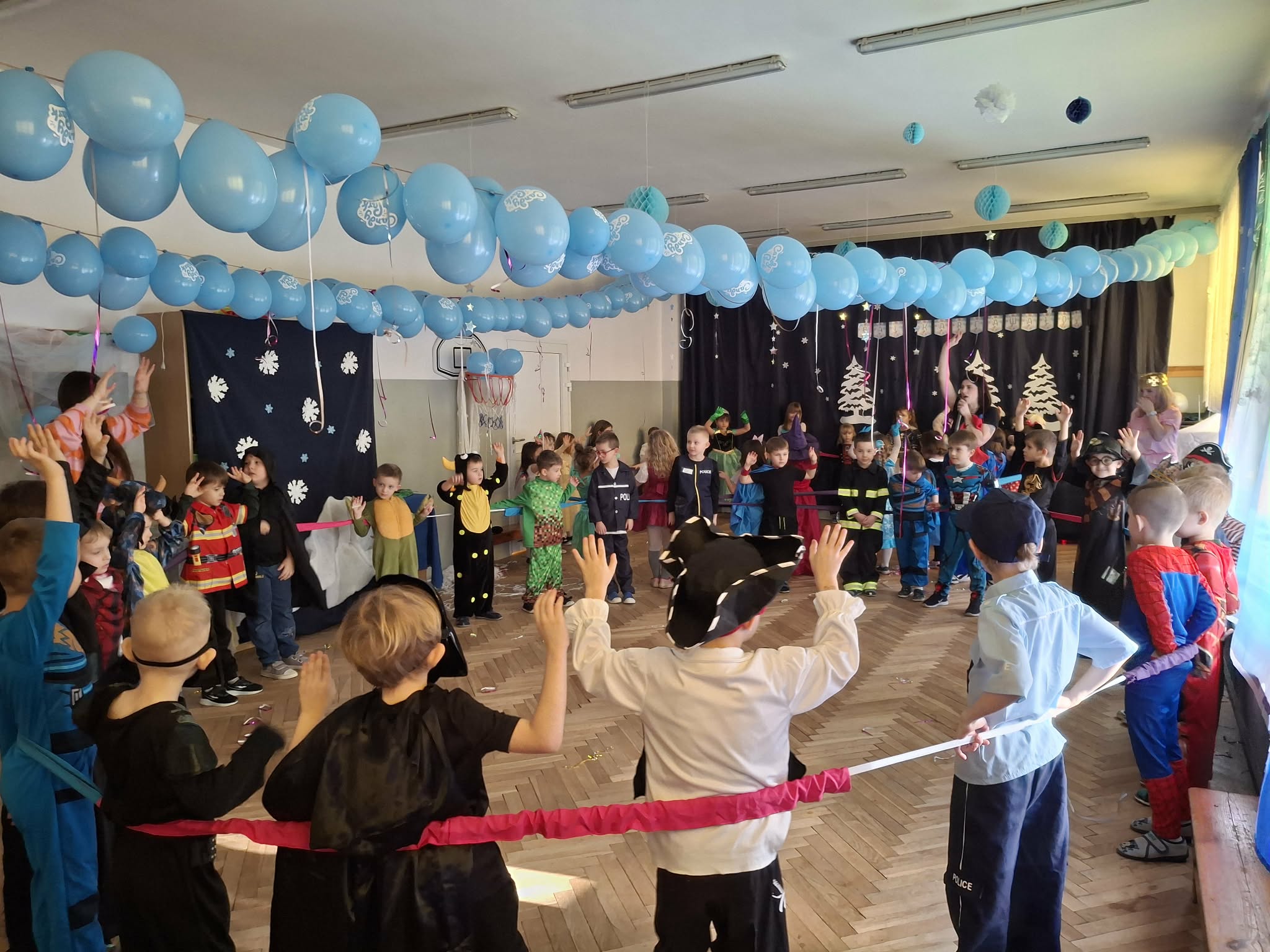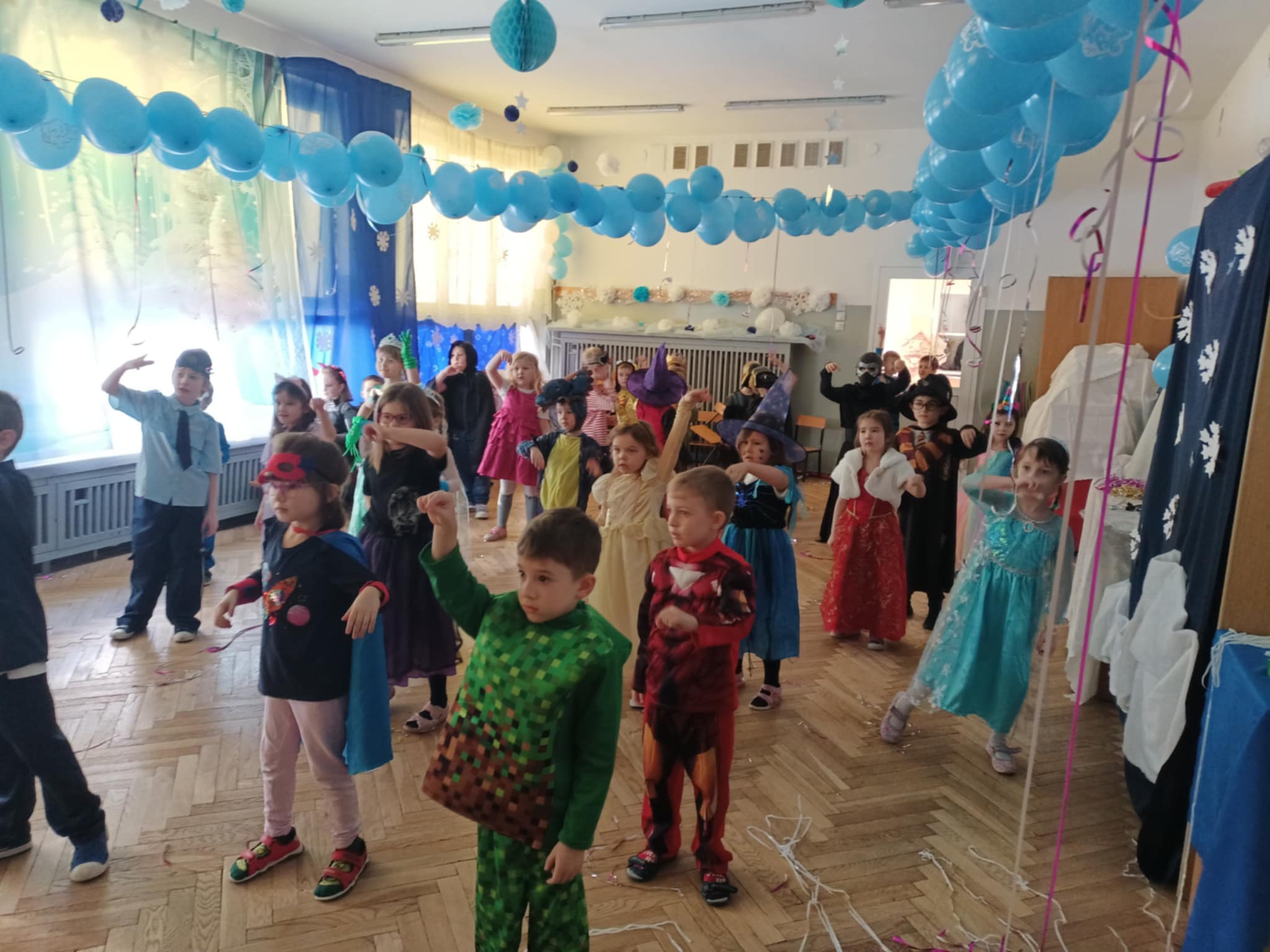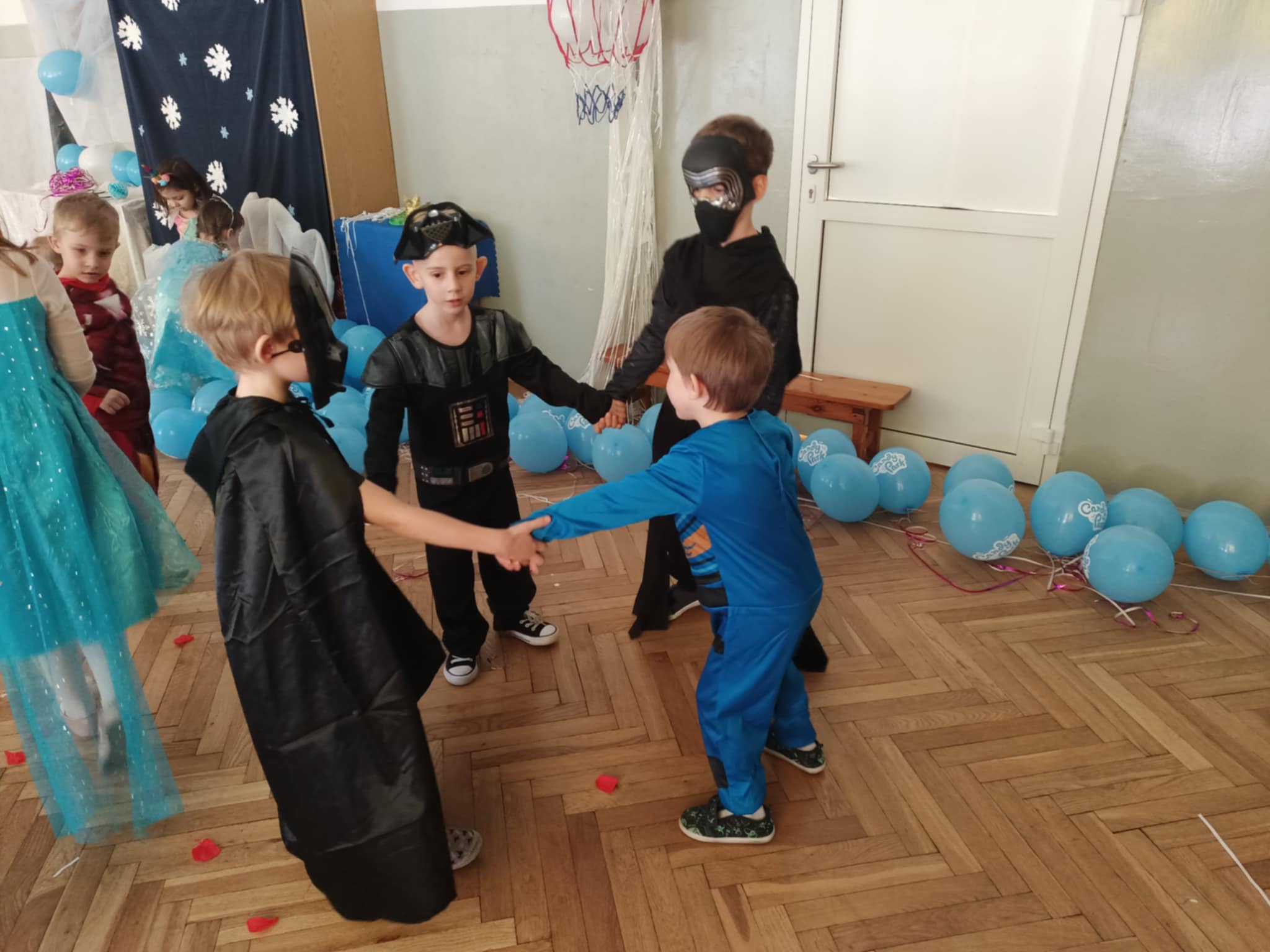 Na balu karnawałowym wszystkie bajkowe postacie i zwierzęta razem tańcowały i się radowały. Powtarzały układy taneczne za animatorką. Doskonale rozpoznawały ulubione piosenki. Bal uświetniały różne rekwizyty. Były zabawy z gumą sensoryczną, balonami, pomponami, piłeczkami oraz obręczami. Bal zakończył się wystrzałami konfetti.