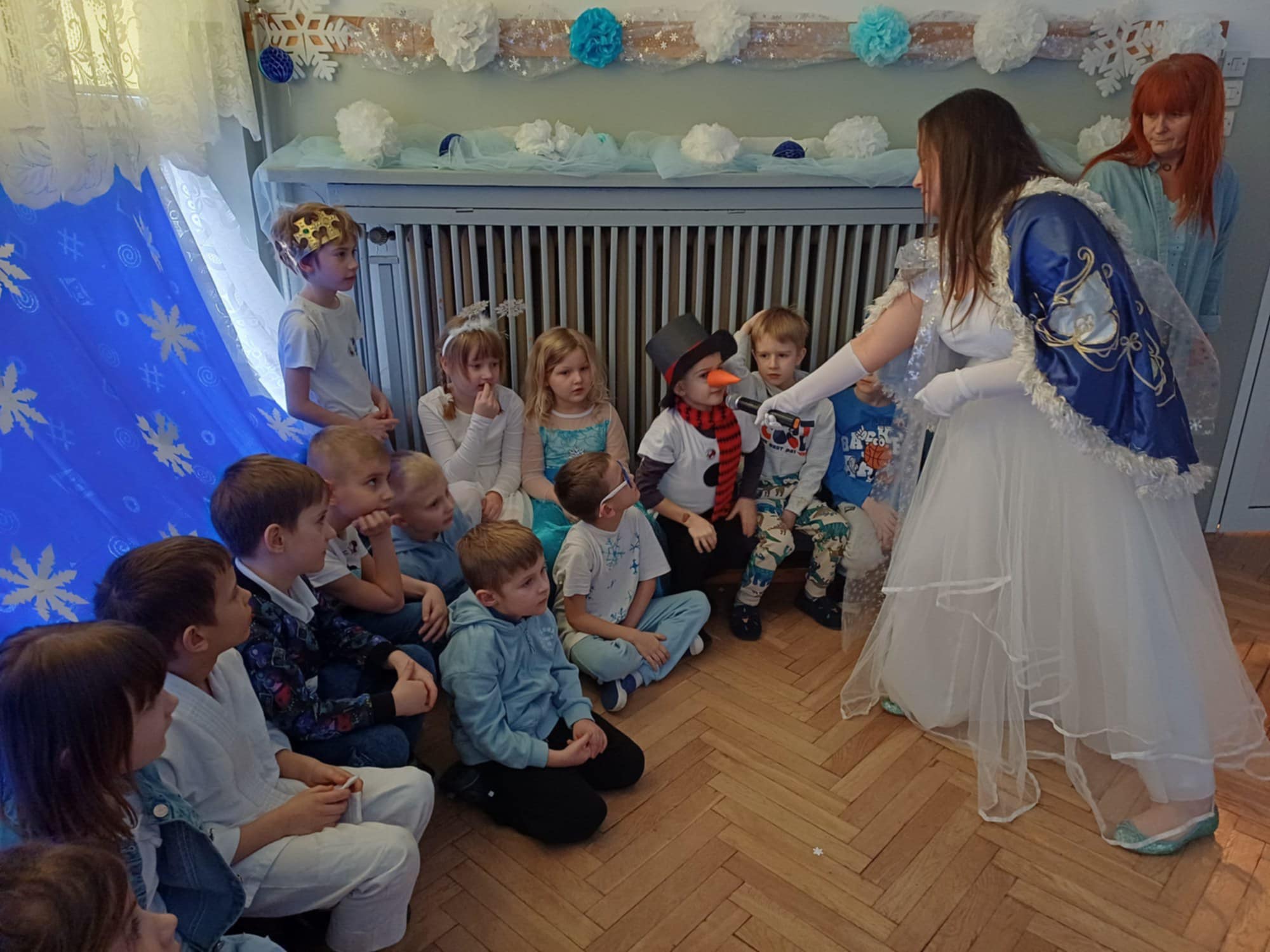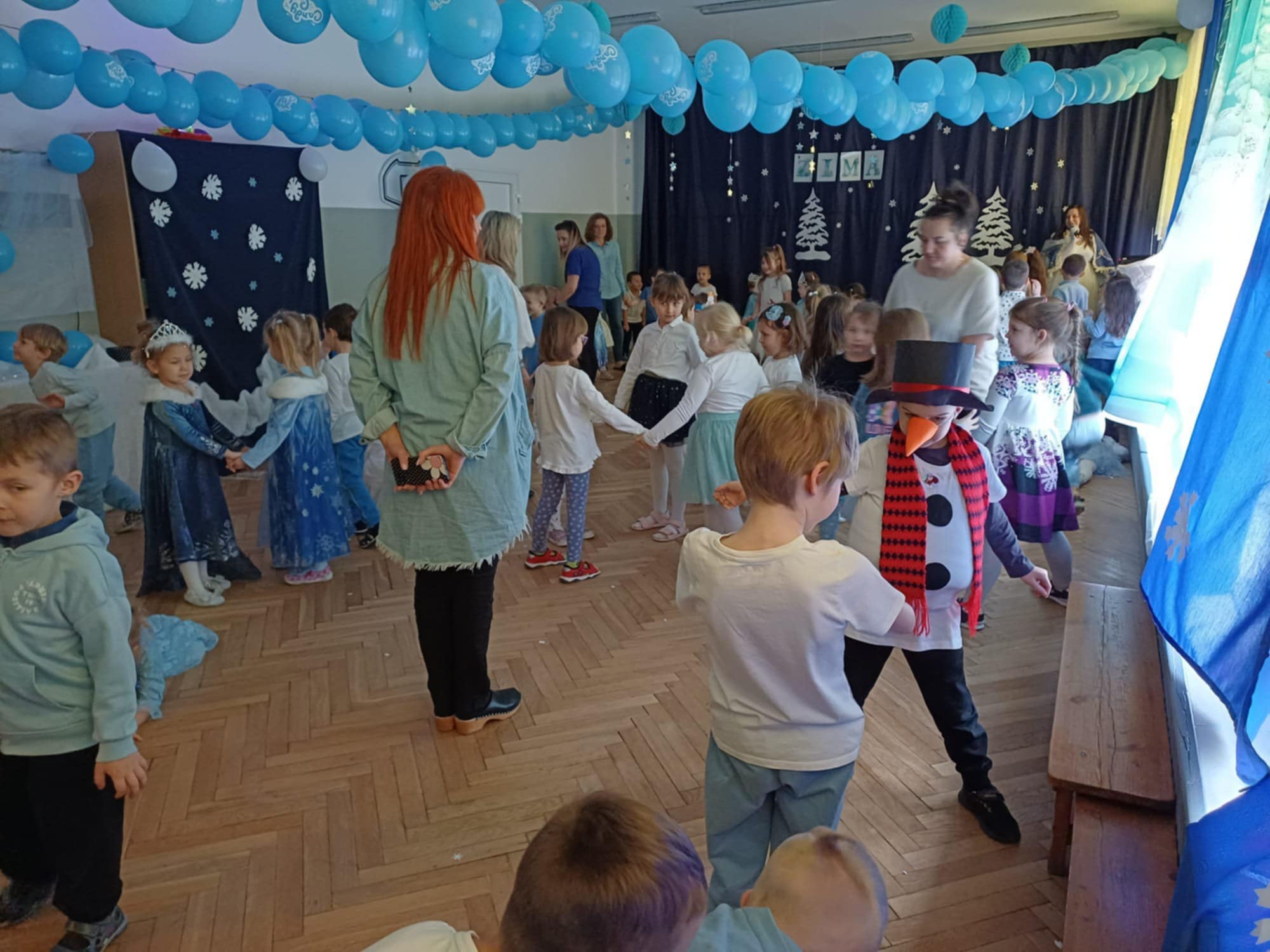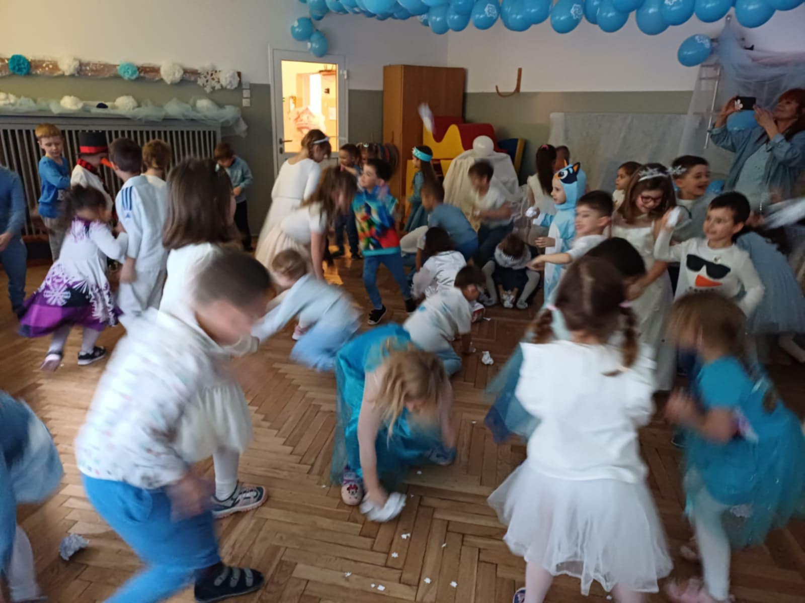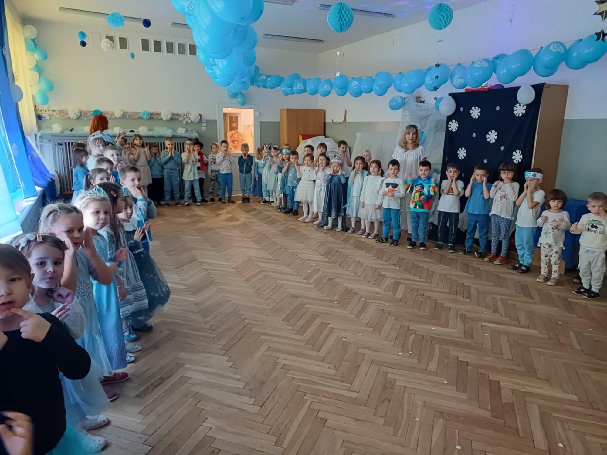 Dzisiaj nasze przedszkole odwiedziła Pani Zima. Przywiozła ze sobą nie tylko zimową aurę, ale też dużo ciepła i radości. Na balu Pani Zimy tańczyliśmy przy zimowych piosenkach. Tworzyliśmy zaprzęgi, lodowe figurki. Rozwiązywaliśmy zagadki o tematyce zimowej. Bal zakończyliśmy bitwą na śnieżki, zrobione z kartek papieru. Panią Zimę pięknie pożegnaliśmy i zaprosiliśmy na bal w przyszłym roku.