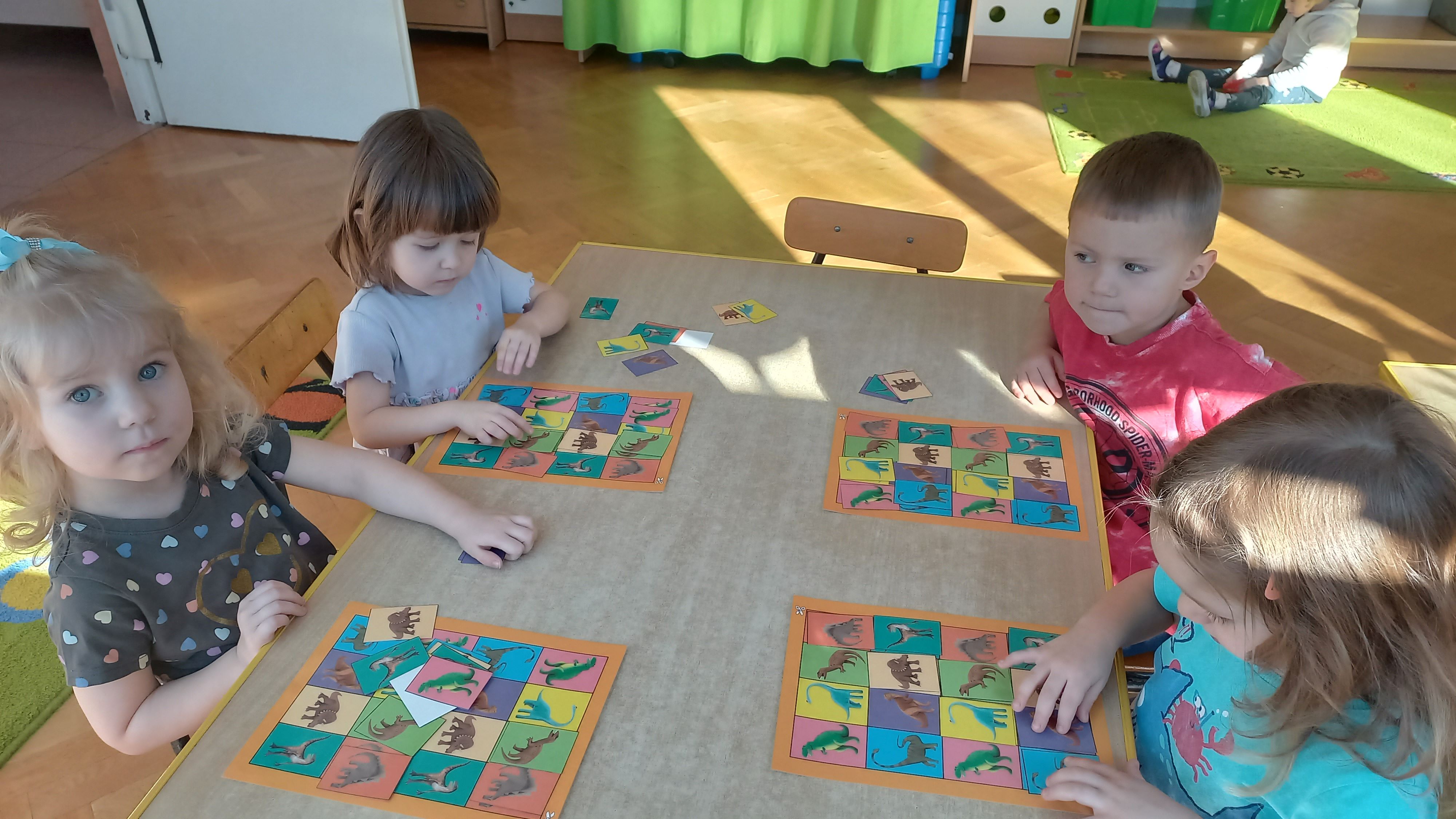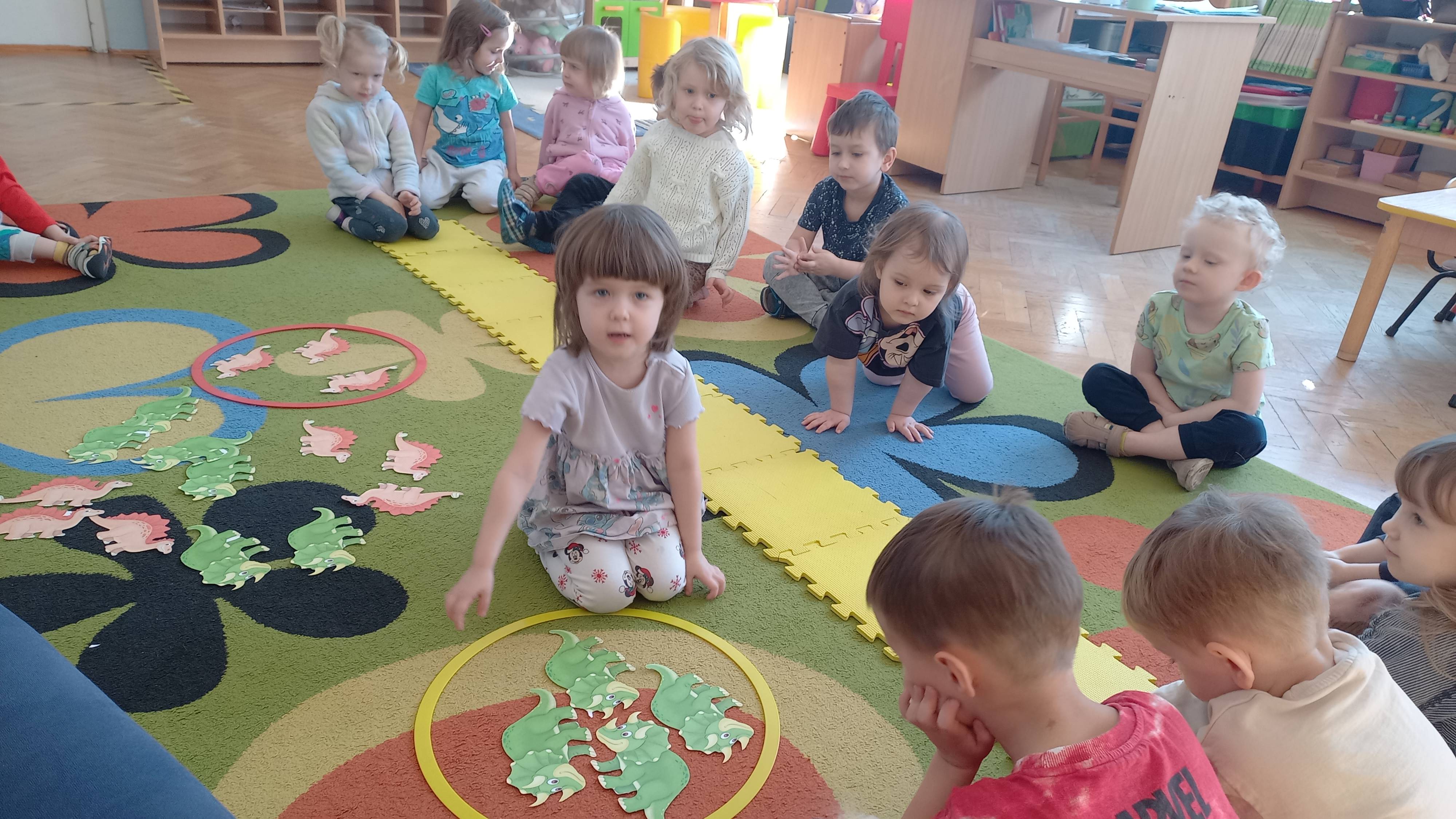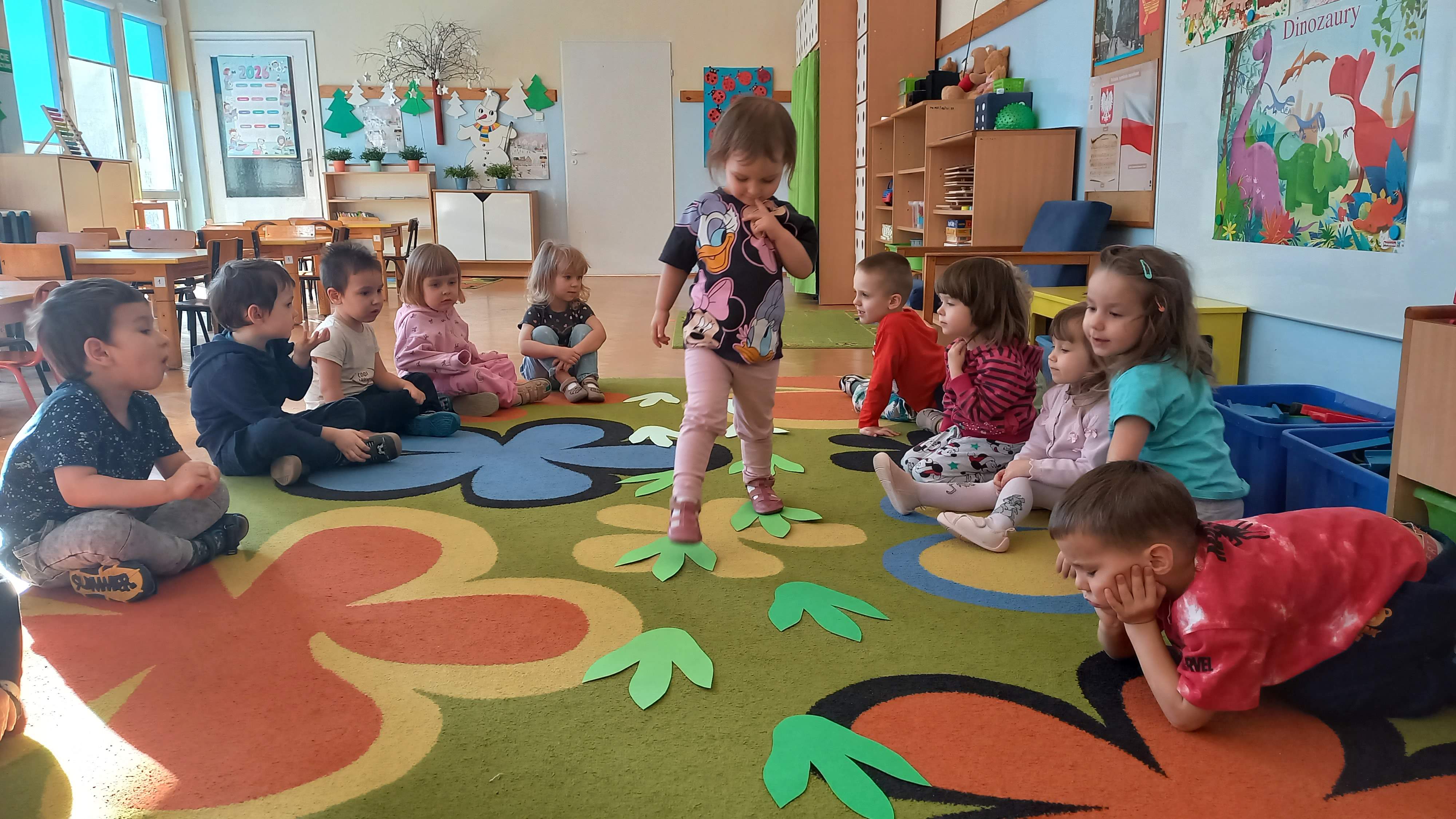 Dnia 26 lutego obchodziliśmy Dzień Dinozaura. Oglądaliśmy ciekawe książki o tych prehistorycznych gadach, poznaliśmy różne gatunki dinozaurów, segregowaliśmy je, ułożyliśmy „dinozaurowy rytm”. Wiele frajdy sprawiły dzieciom odwiedziny „zielonego dinozaura”, oglądały go z wielkim zaciekawieniem. Na zakończenie chodziliśmy po śladach dinozaurów. W tym dniu bawiliśmy się znakomicie!