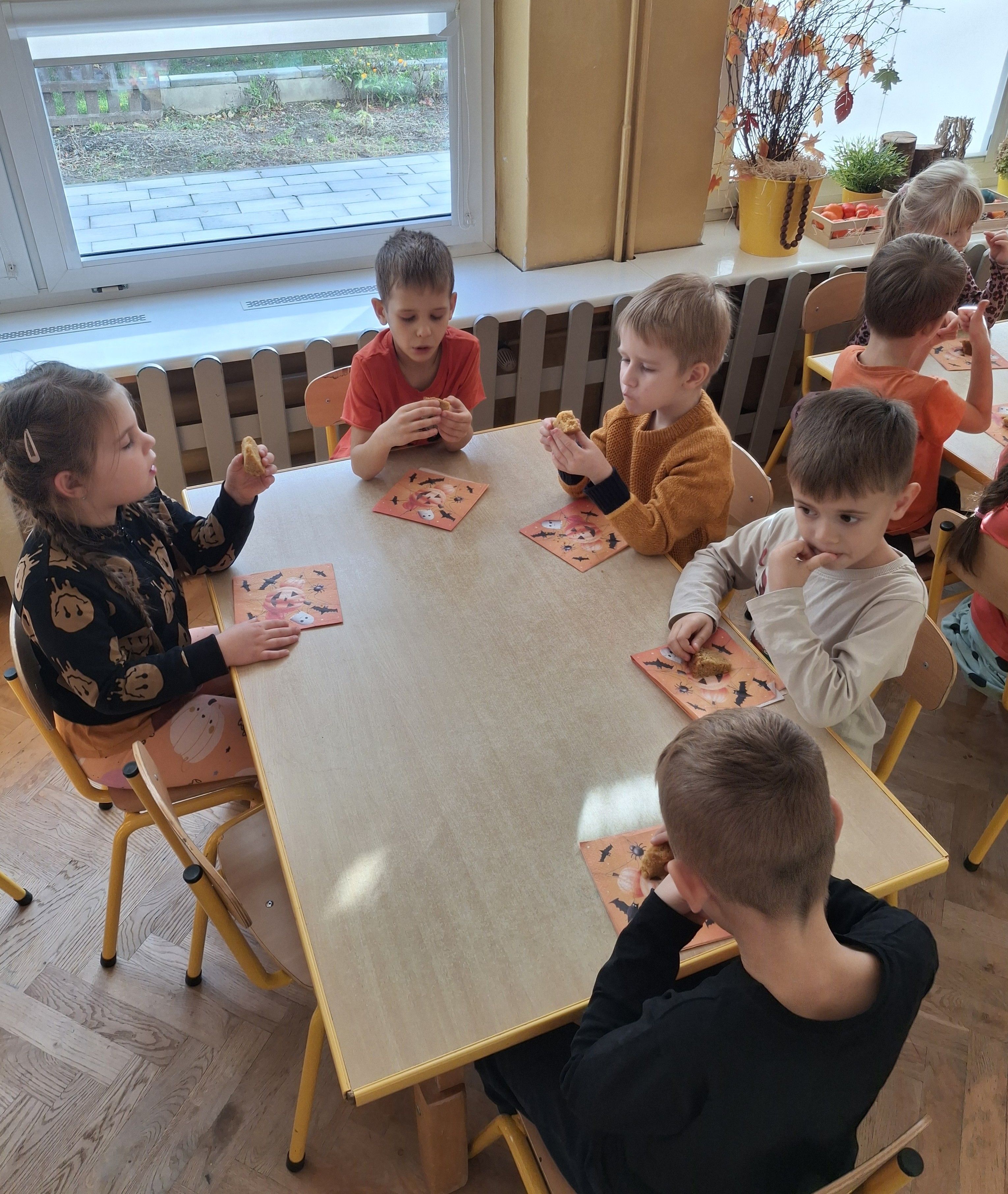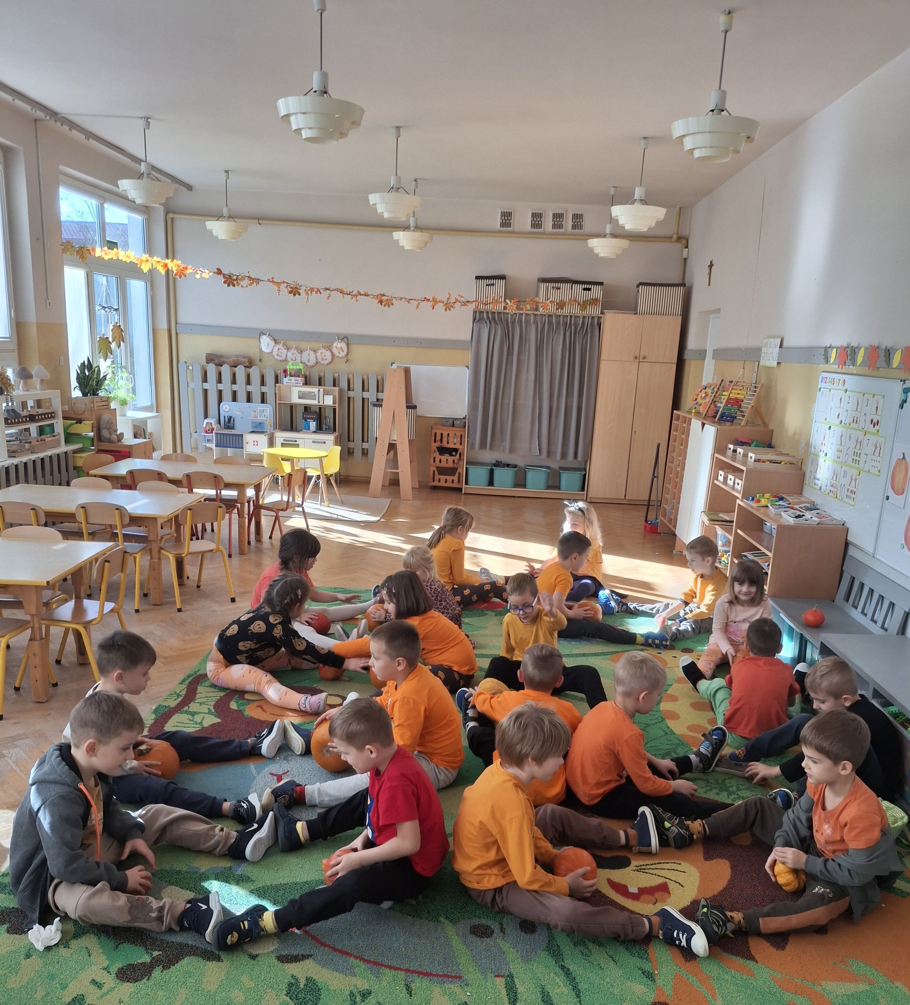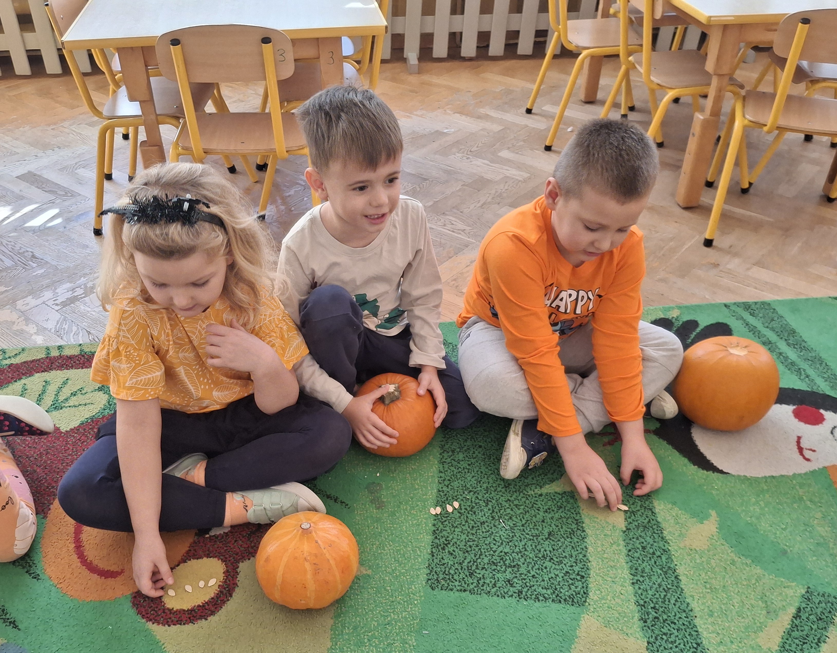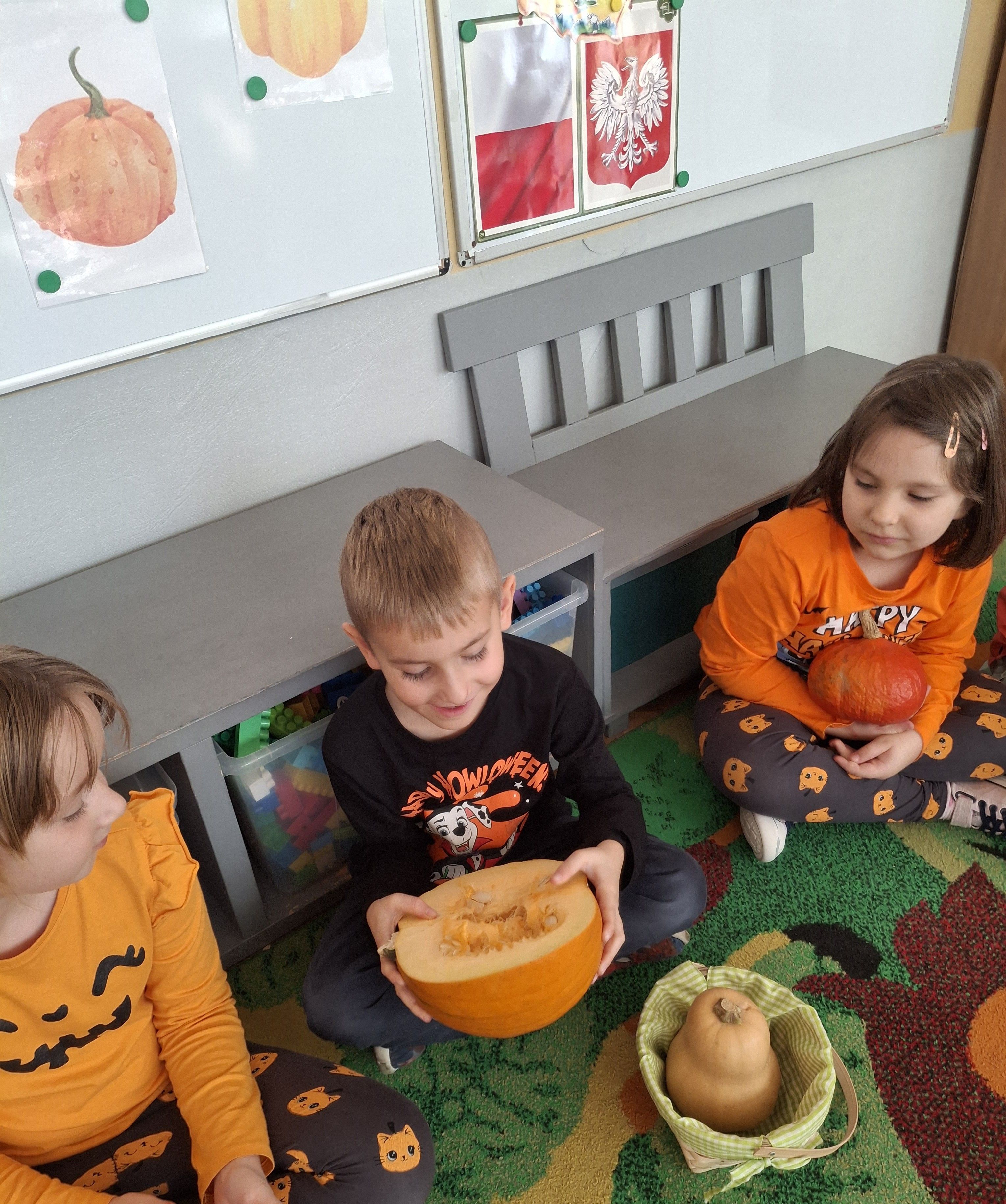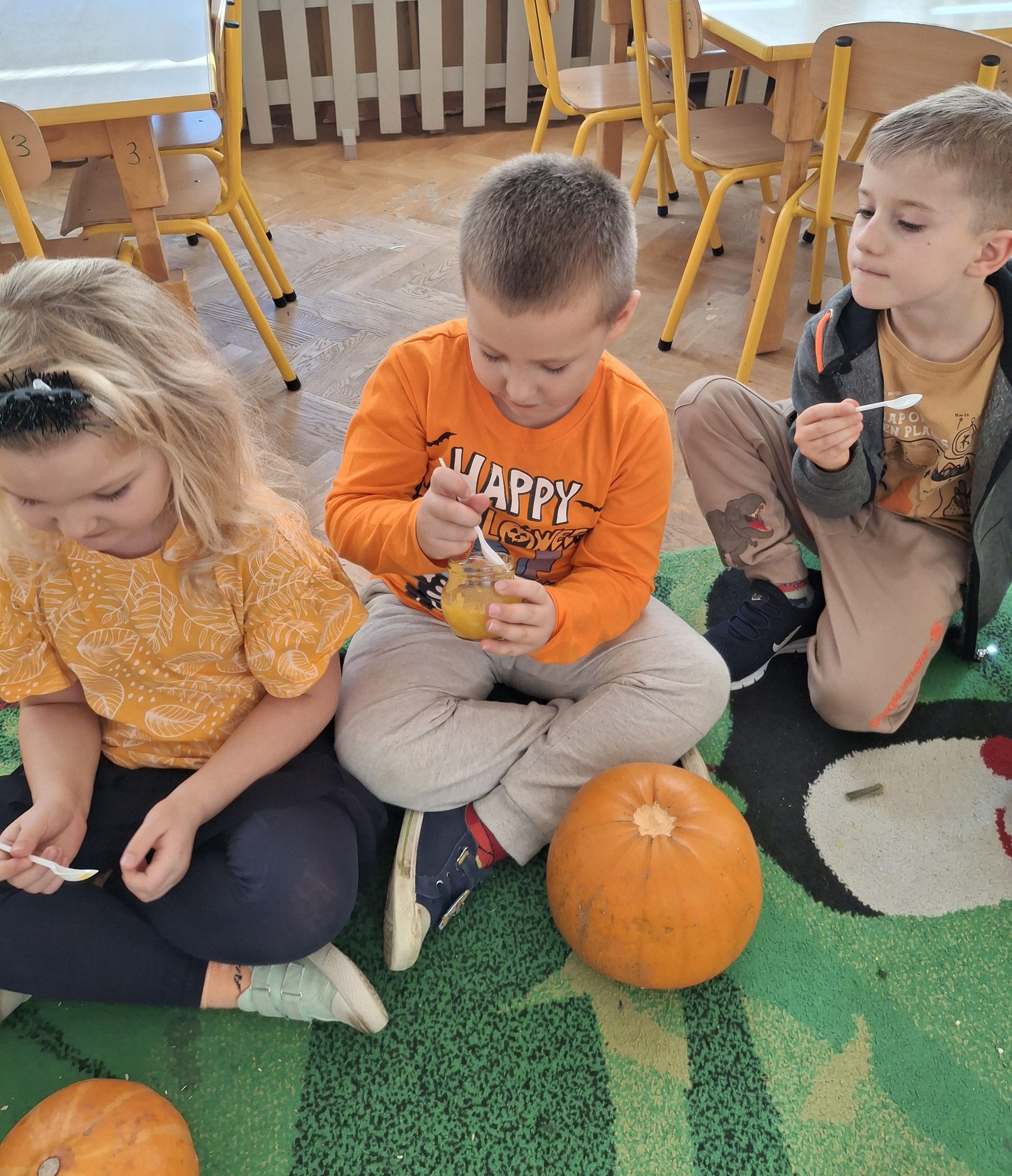 Wielka jak arbuz, lecz pomarańczowa, jesienią w ogródku na grządce się chowa. To właśnie nie kto inny, a dynia dziś obchodziła swoje święto. Motylki ubrane w dyniowych kolorach oglądały różne dynie, zbierały i przeliczały pestki. Obserwowaliśmy też jak wygląda dynia w środku i poznaliśmy cykl rozwojowy dyni. Było mnóstwo różnych zabaw z dyniami i rozmowy o tym, co można zrobić z dyni. Udało nam się spróbować nawet musu z dyni i ciasta dyniowego, które zostało zjedzone, co do okruszka.