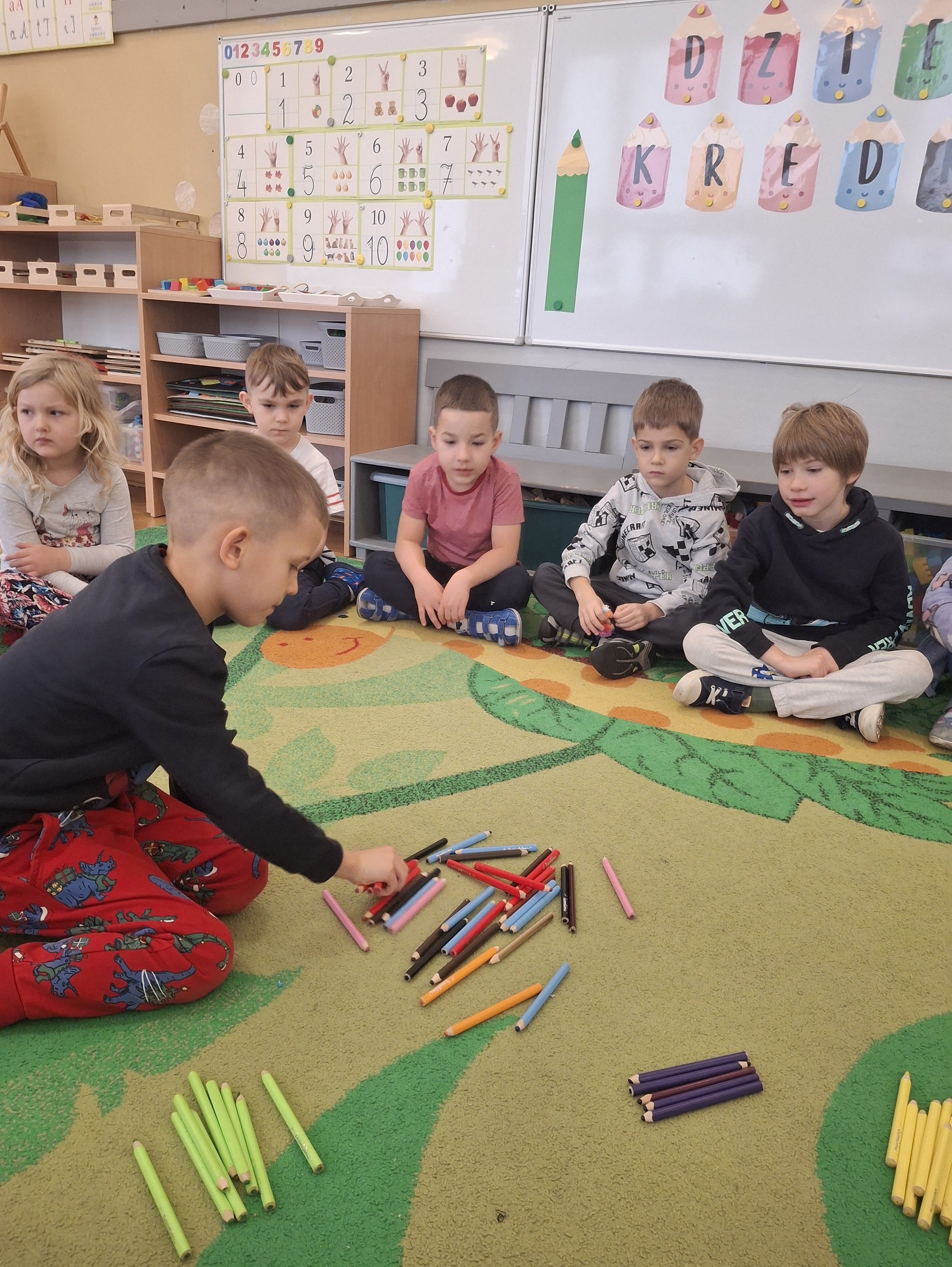 Używane codziennie - ołówkowe, świecowe czy pastele to właśnie kredki obchodziły dziś swoje święto. Tego dnia oglądaliśmy różne kredki, porównywaliśmy je, przeliczaliśmy, układaliśmy według wzoru, segregowaliśmy według kolorów. Zadbaliśmy też o to, aby wszystkie nasze kredki były zatemperowane i ładnie ułożone.