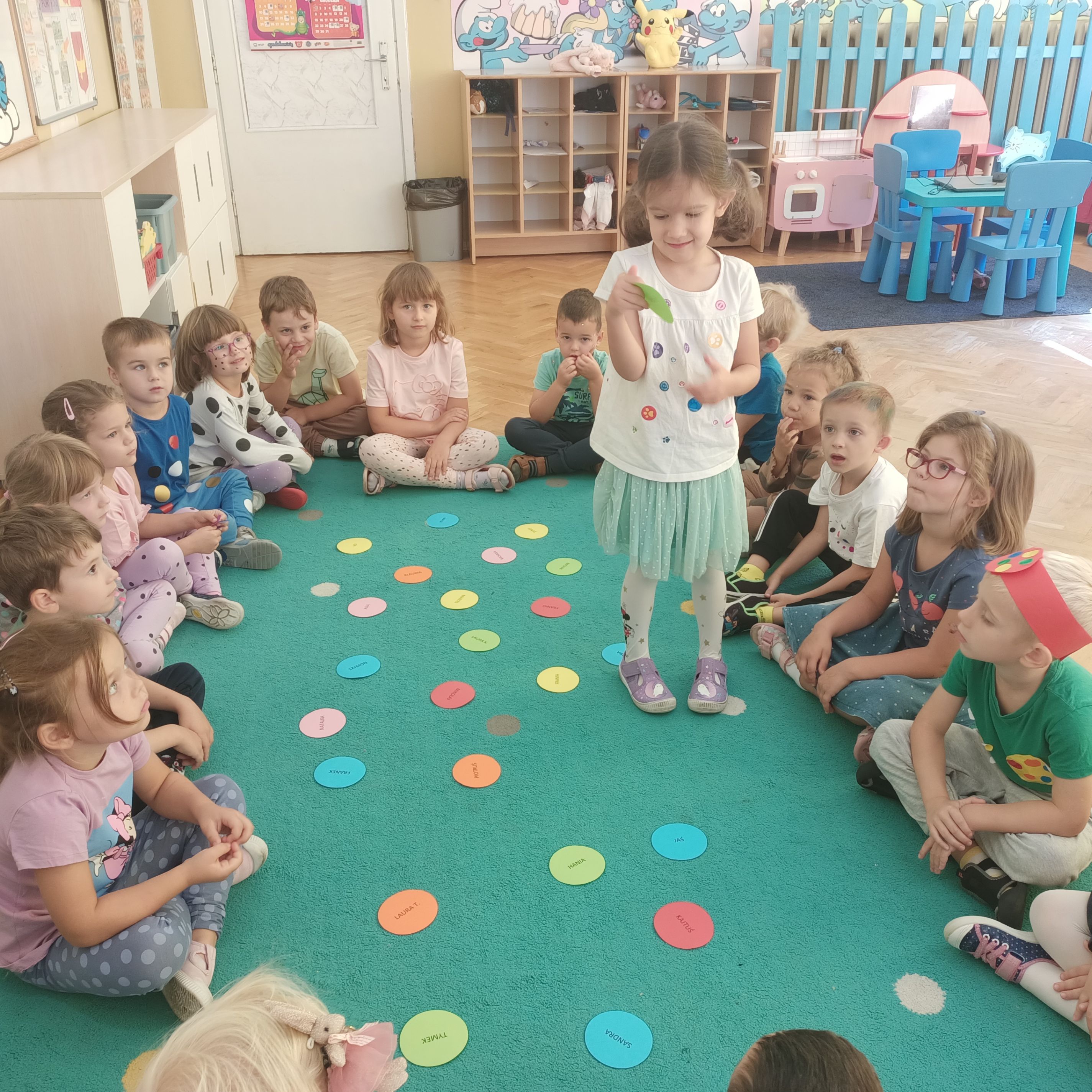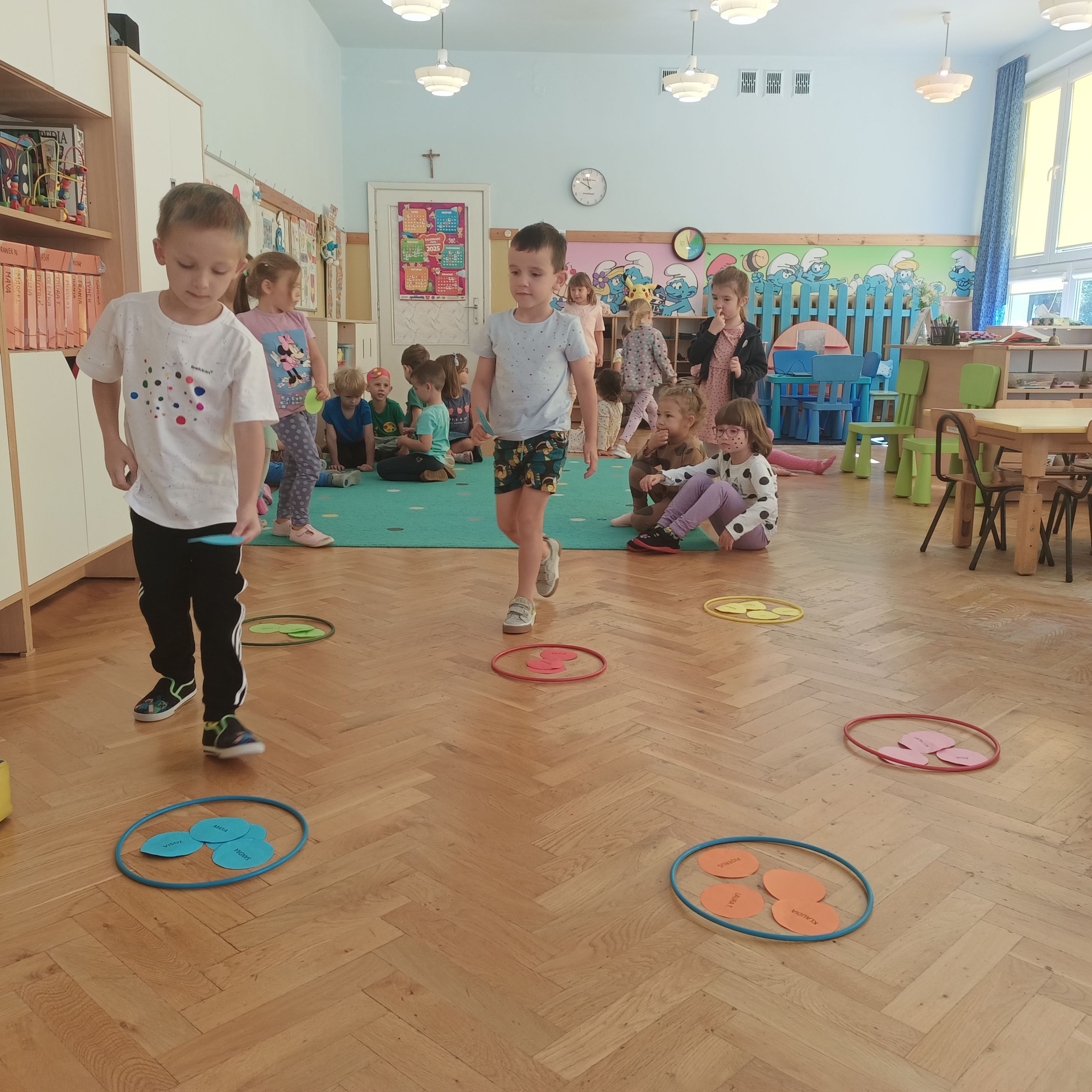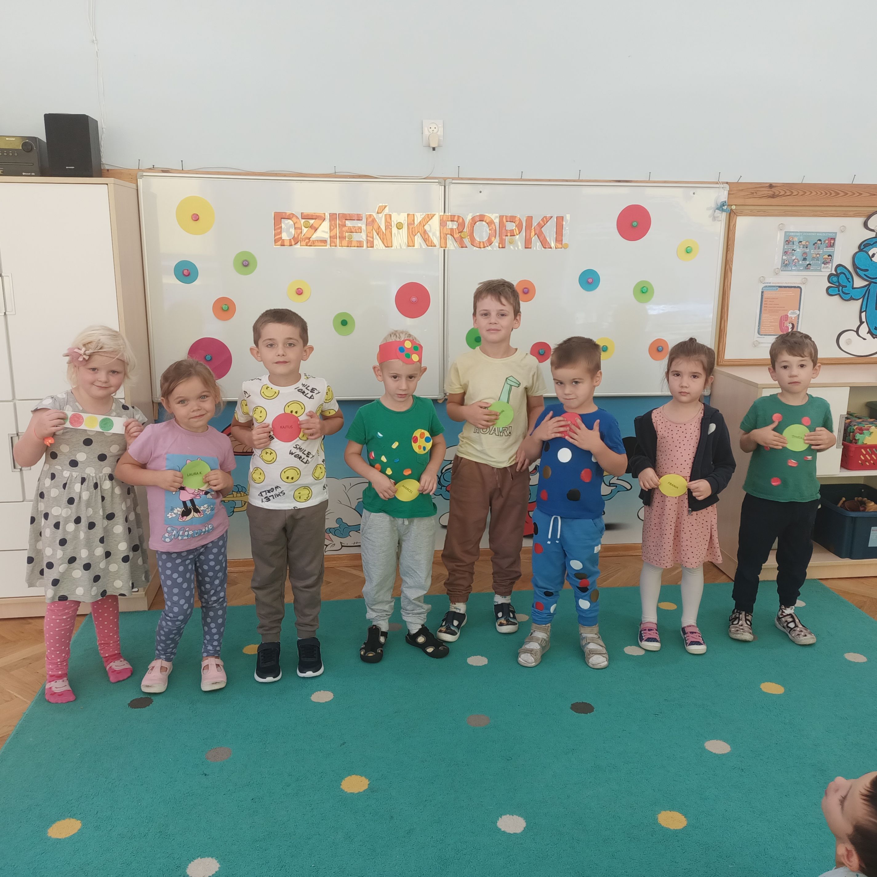 Dzisiaj królowały w naszej klasie kropki. Najpierw odbył się pokaz mody kropkowej, a potem nastąpiło zapoznanie się z historią kropki na podstawie filmu. Następnie dzieci musiały odszukać kropkę ze swoim imieniem. Nie było to łatwe, ale każdemu się udało. Układanie kolorowych kropkowych rytmów również nie sprawiło trudności. Kolejnym zadaniem było segregowanie kropek wg kolorów i ich przeliczanie. Tego dnia były jeszcze zabawy muzyczno-ruchowe i działania plastyczne.