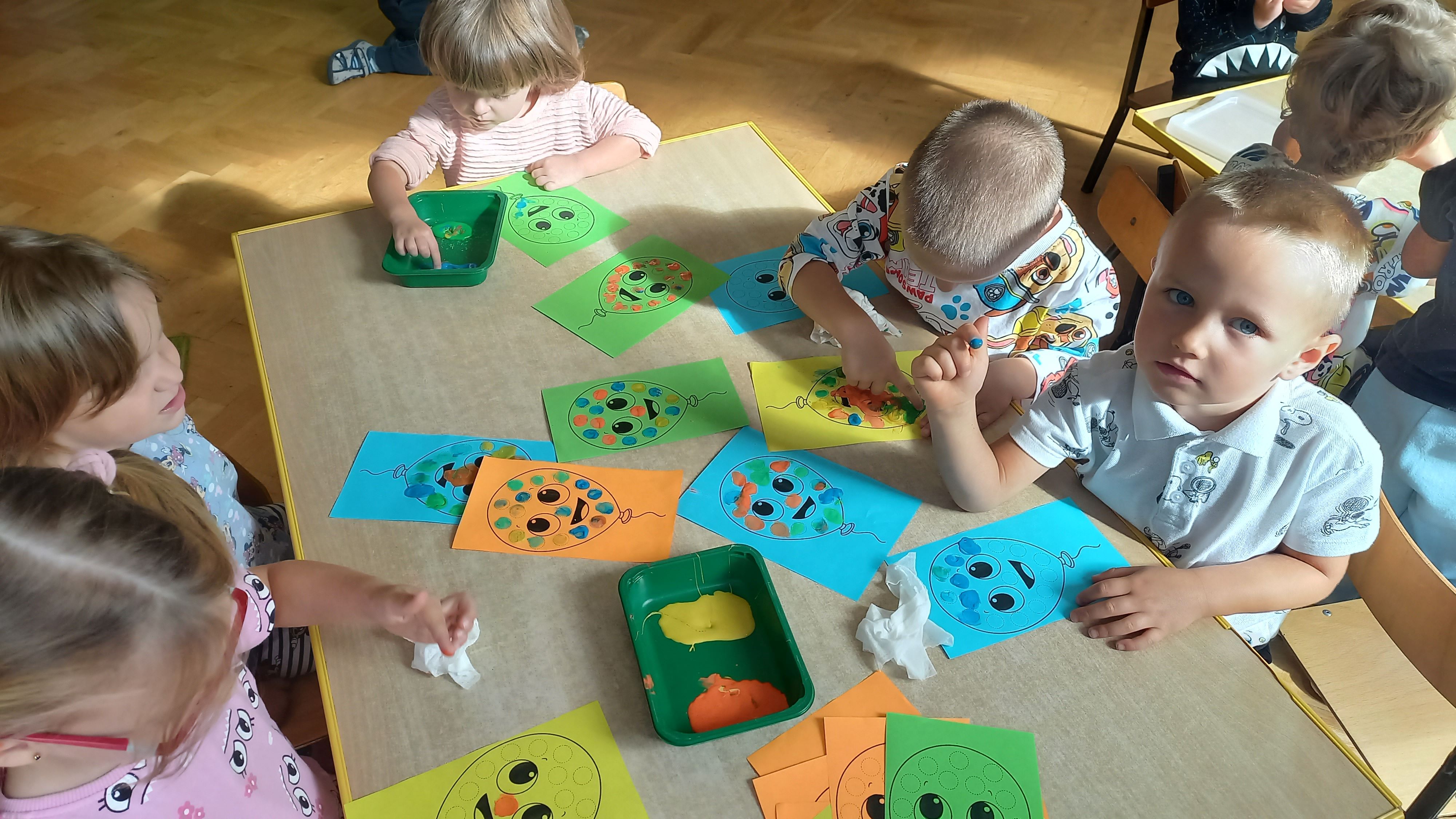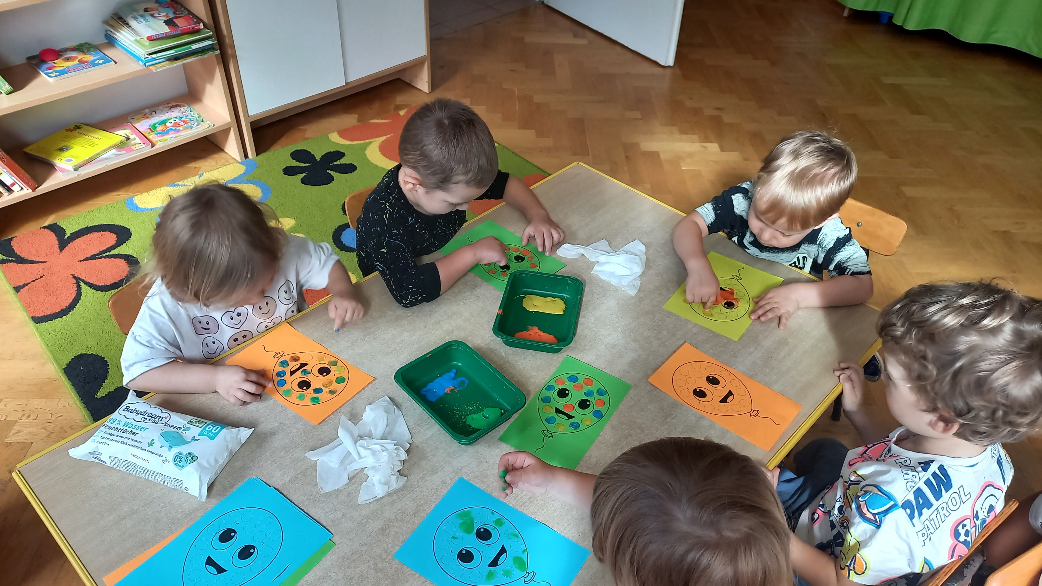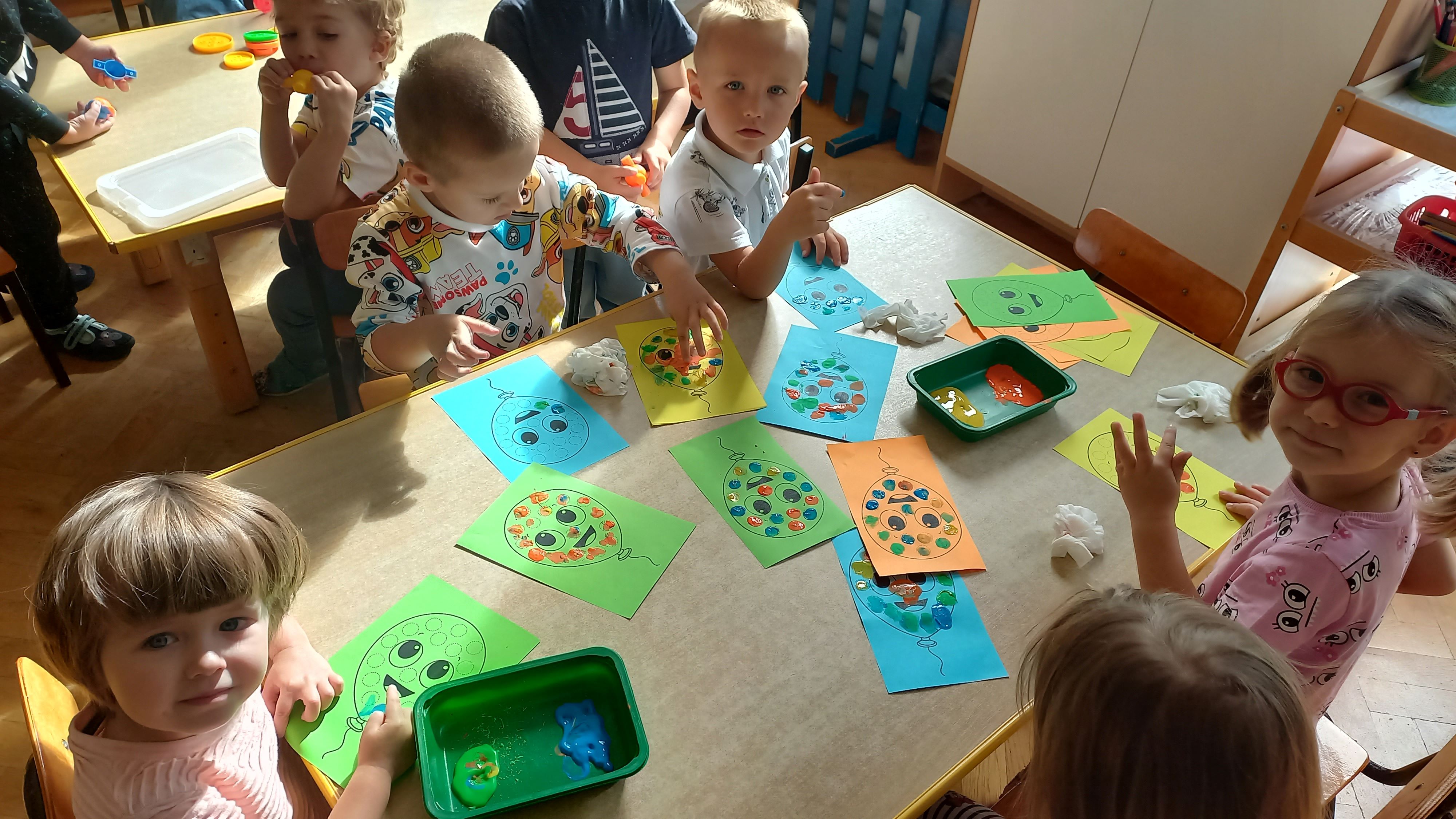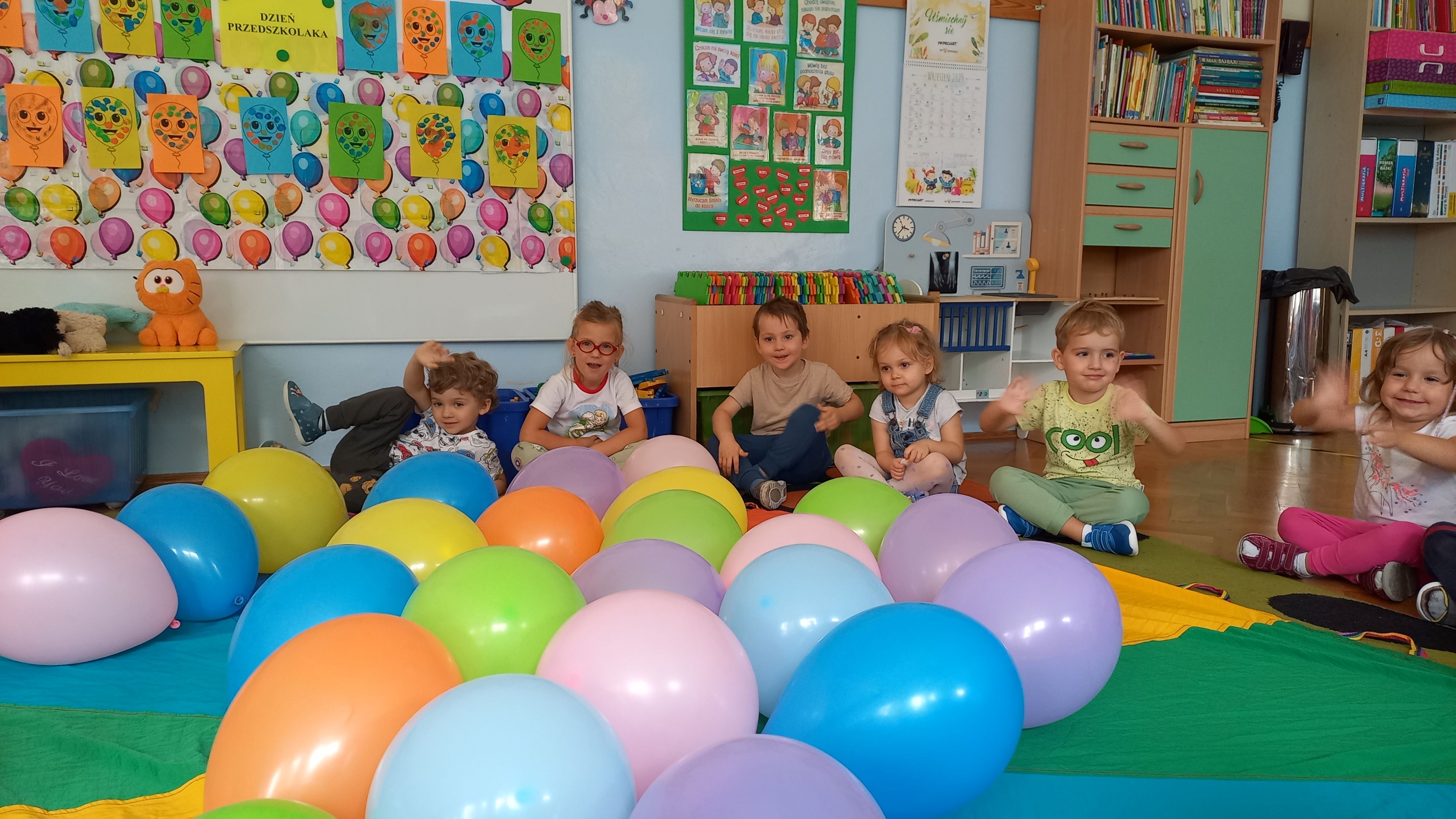 Przygotowania do Dnia Przedszkolaka rozpoczęliśmy wykonaniem kolorowych baloników – stawialiśmy kropki na sylwetach balonów. Nasze prace wykorzystaliśmy do dekoracji klasy. W tym dniu bawiliśmy się chustą animacyjną i balonami a następnie braliśmy udział we wspólnych zabawach z dziećmi z grupy Pszczółek, Motylków i Smerfów w naszym przedszkolnym ogrodzie.