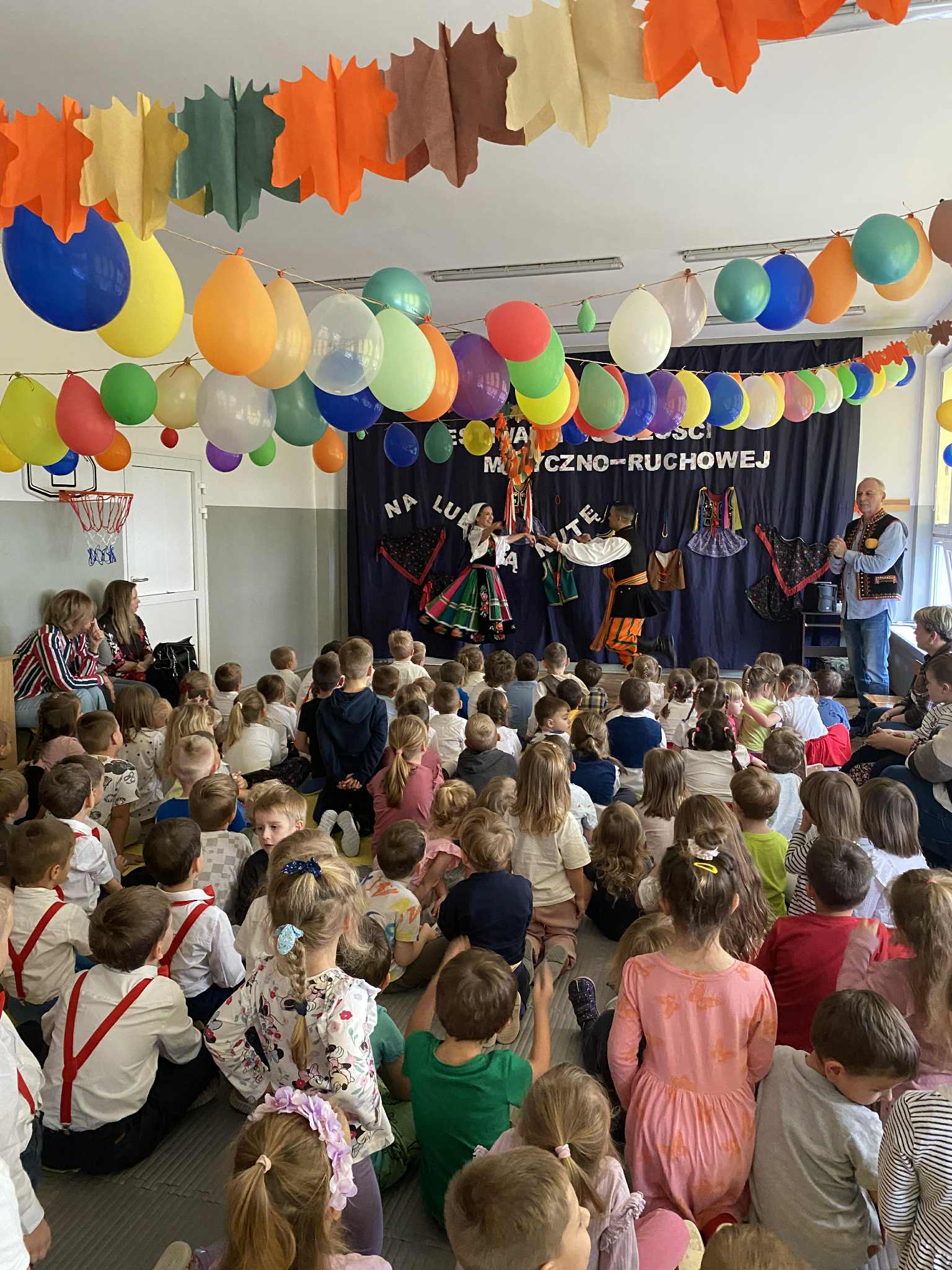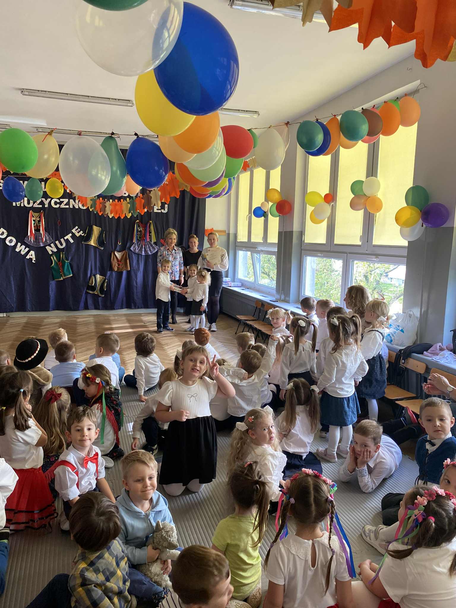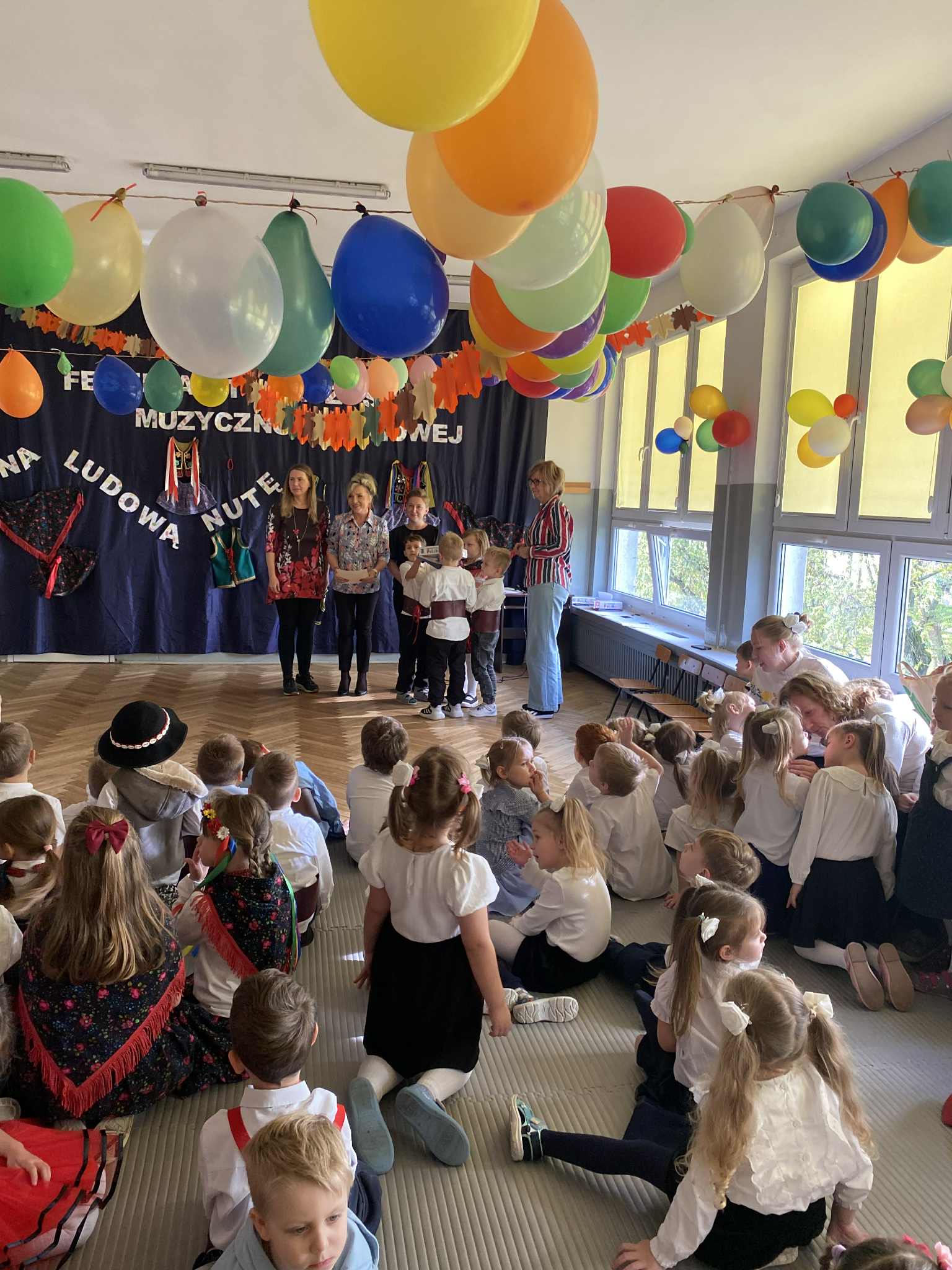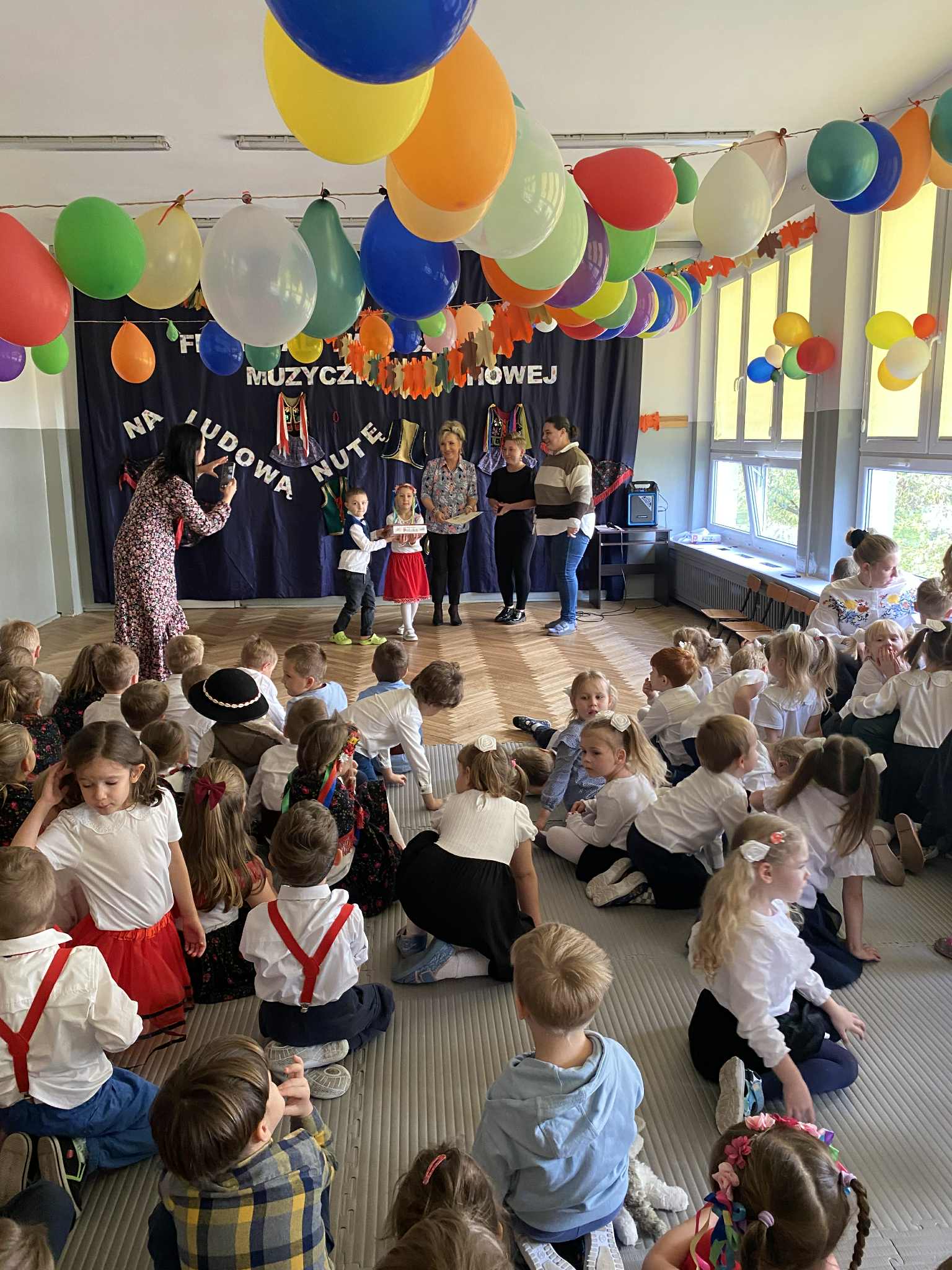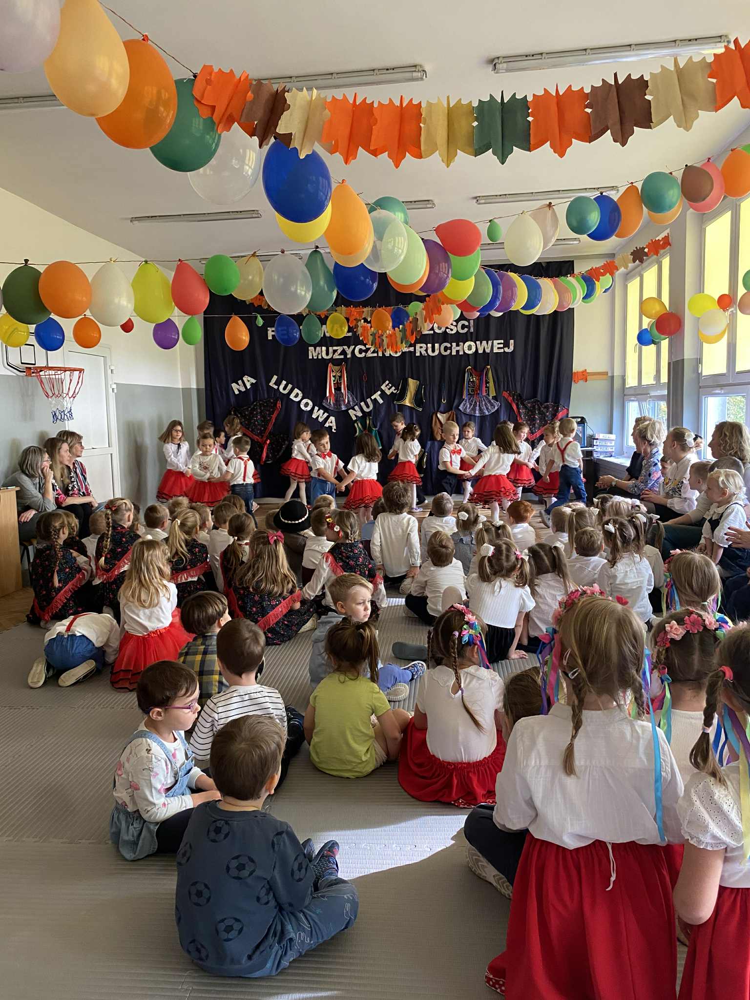 Tegoroczny Festiwal Twórczości Muzyczno-Ruchowej odbył się pod hasłem "Na ludową nutę". Jego myślą przewodnią było promowanie tradycji naszego kraju oraz zapoznanie z tańcami ludowymi różnych regionów Polski. Na festiwal przybyły dzieci z przedszkoli 101, 118 i 102. Wzięły w nim udział także przedszkolaki z naszej placówki. Mali artyści zaprezentowali tańce: Klepany, Hej bystra woda oraz Krakowiaczek. Gościnnie wystąpiła para taneczna, która zaprezentowała się w stroju ludowym i zatańczyła tańce z różnych regionów Polski. Dziękujemy wszystkim uczestnikom festiwalu za wspaniałe występy, a nauczycielom za czas poświęcony w przygotowanie małych artystów.