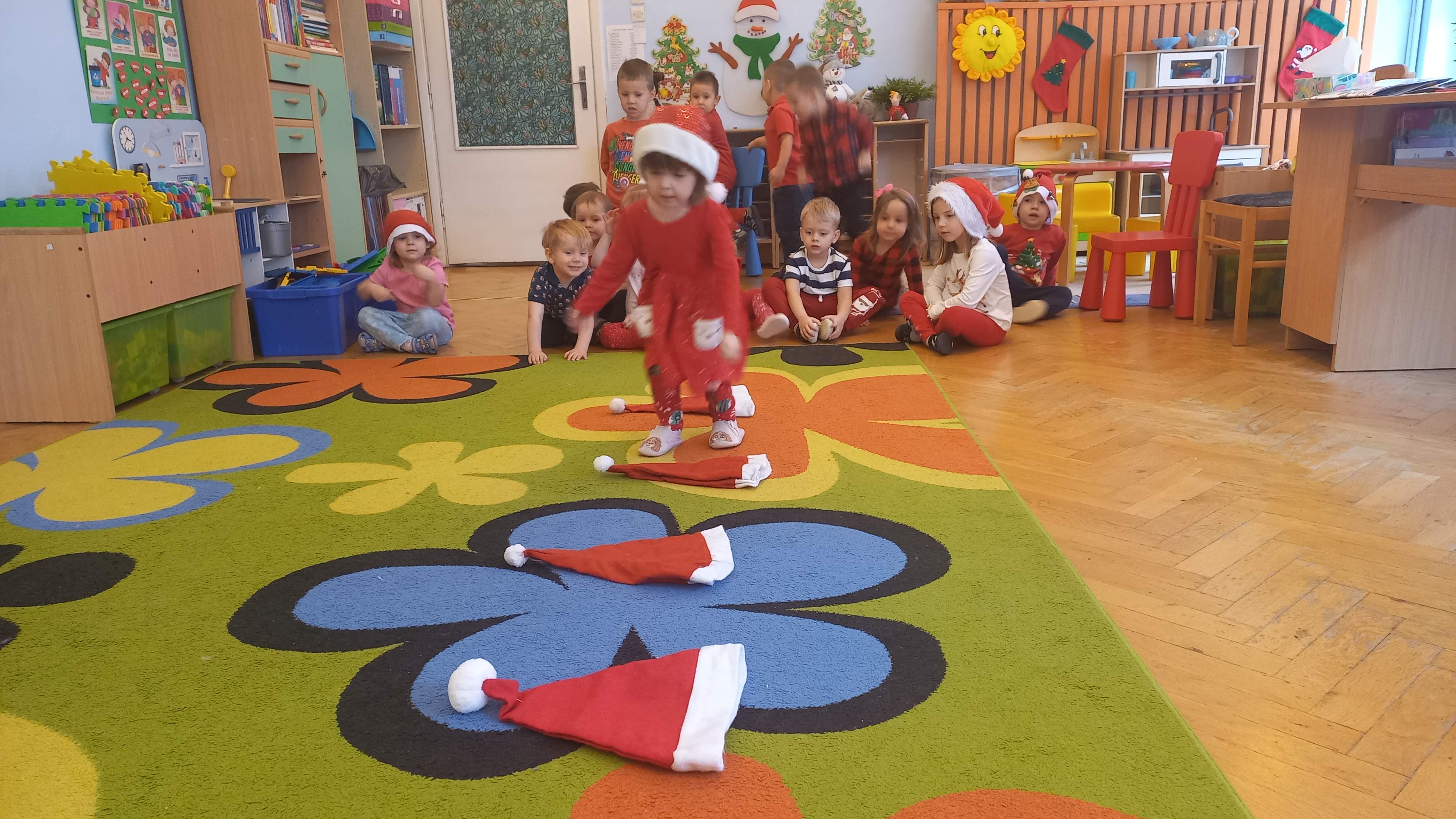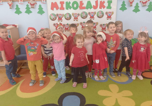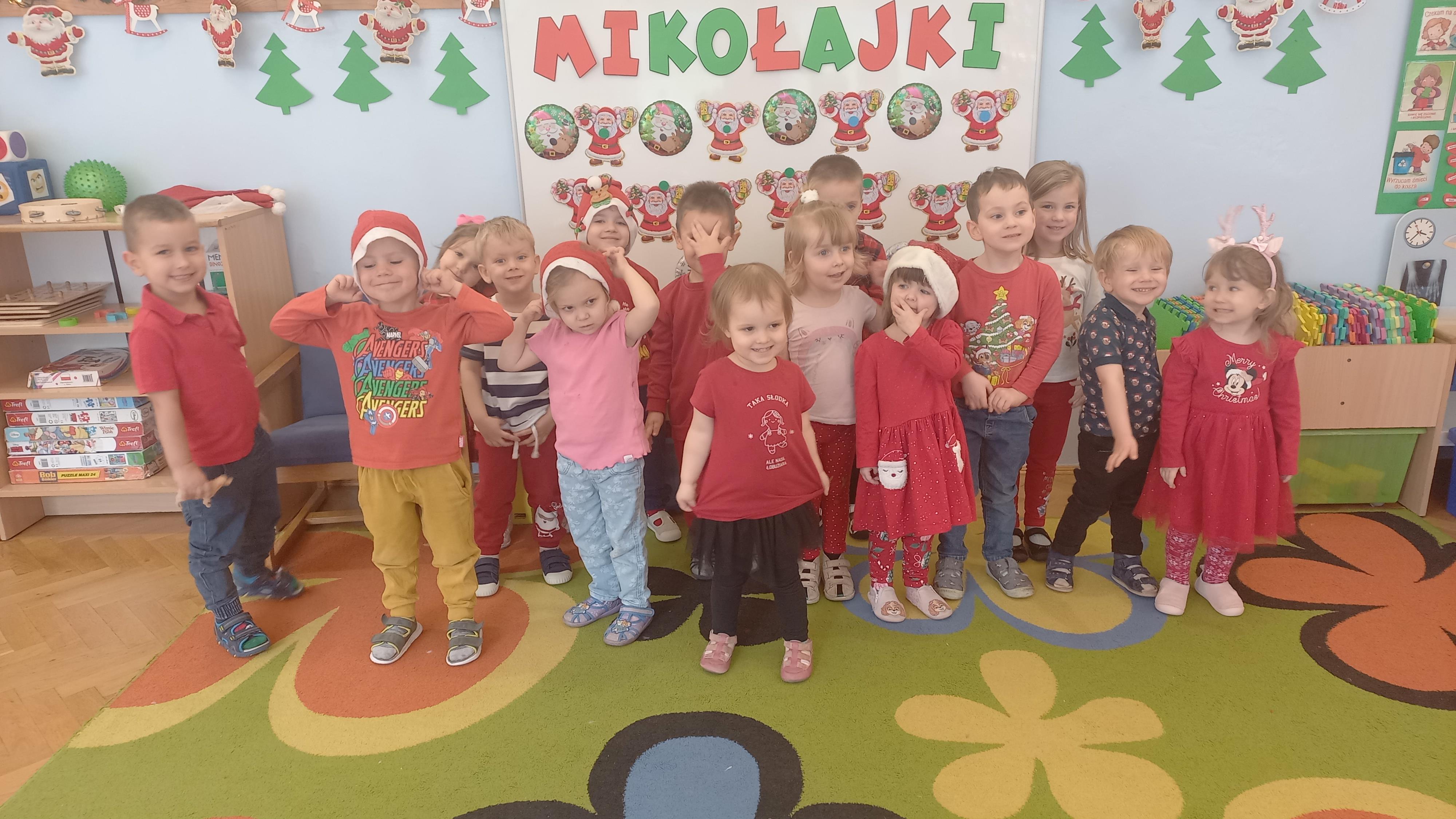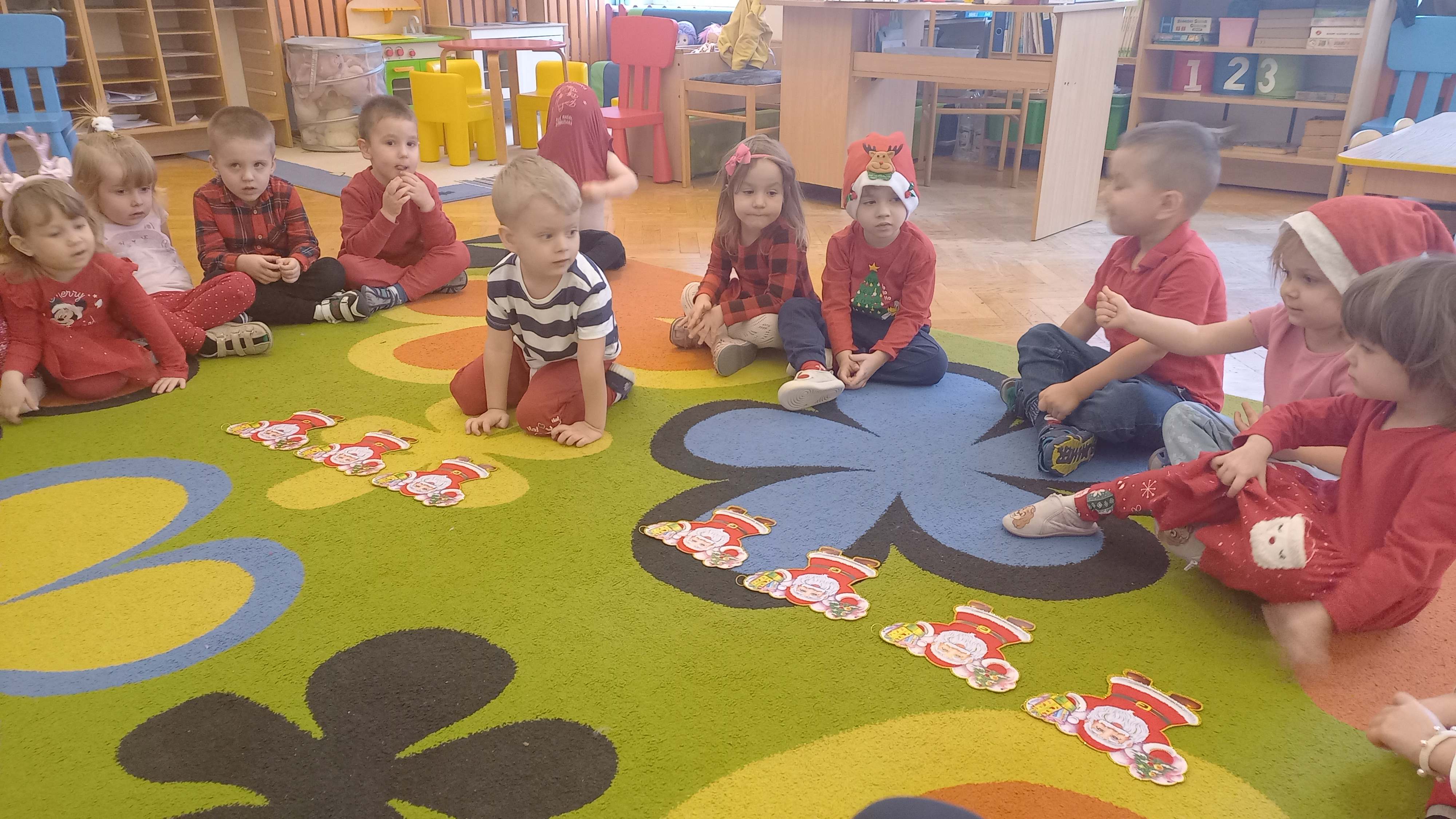 Mikołajki to magiczny dzień pełen radości, na który wszyscy czekają z niecierpliwością. W oczekiwaniu dzieci wykonały pracę plastyczną „Skarpeta Mikołaja”. W tym dniu przedszkolaki ubrały się na czerwono a ich głowy zdobiły czerwone czapki, bawiły się w mikołajkowe zabawy i uczyły się piosenki o Mikołaju „To już święta i Mikołaj zbliża się HO, HO, HO, HO!”