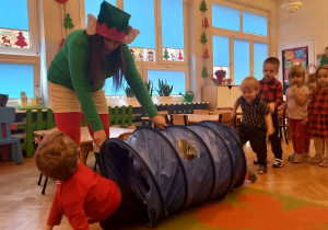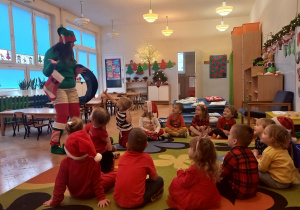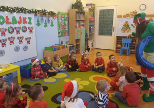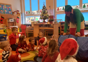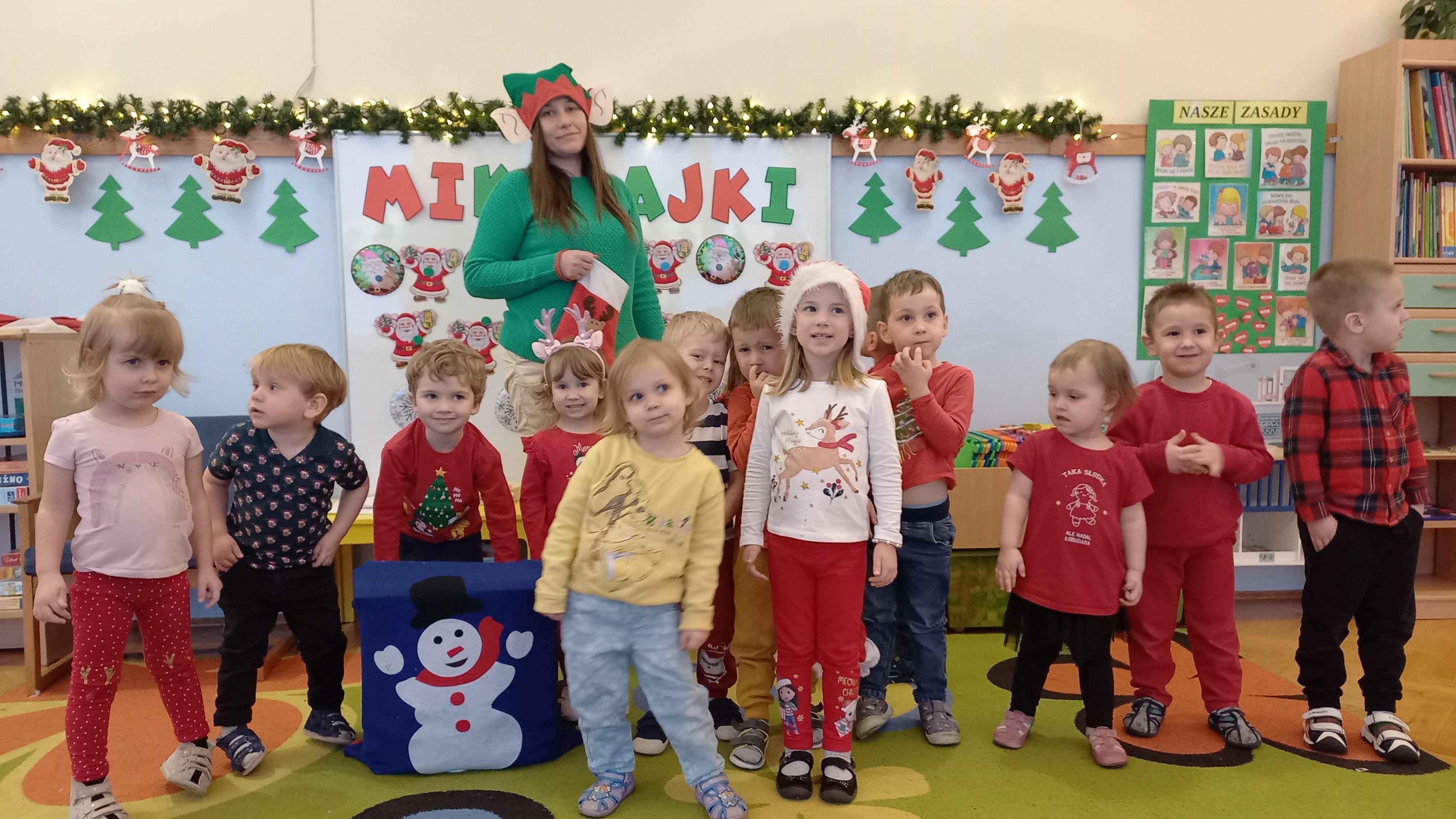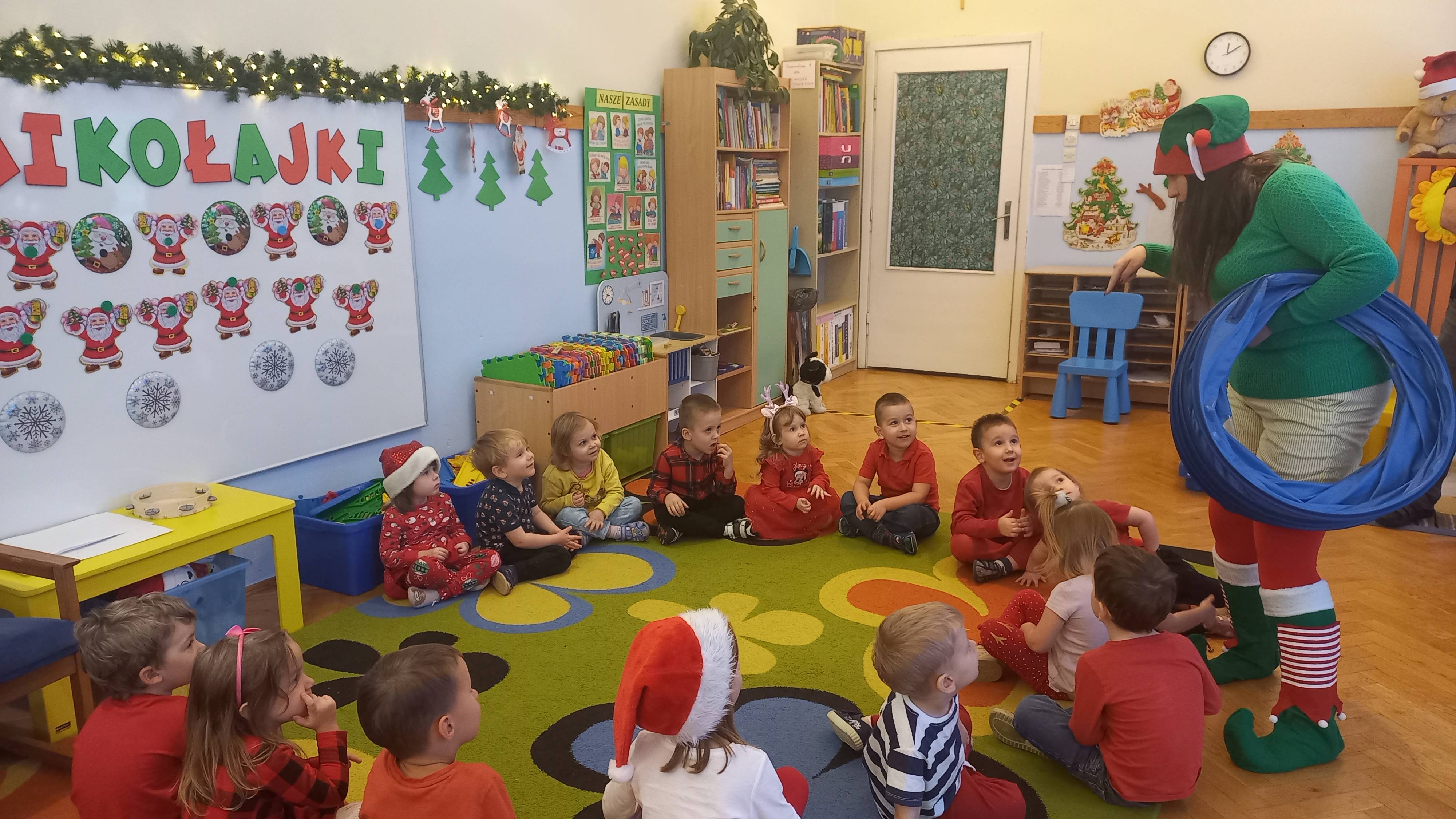 W dniu imienin Świętego Mikołaja odwiedził nas Elf – jego wysłannik. Po rozmowie z Elfem przechodziliśmy przez „komin”, następnie Elf przyniósł duży worek, w którym były kalendarze adwentowe i książeczki do kolorowania. Elf zostawił również na naszych drzwiach zdjęcie Mikołaja z napisem „Obiekt monitorowany przez św. Mikołaja.” Musimy teraz starać się i być bardzo grzeczni, żeby Mikołaj mógł do nas przyjść z prezentami.