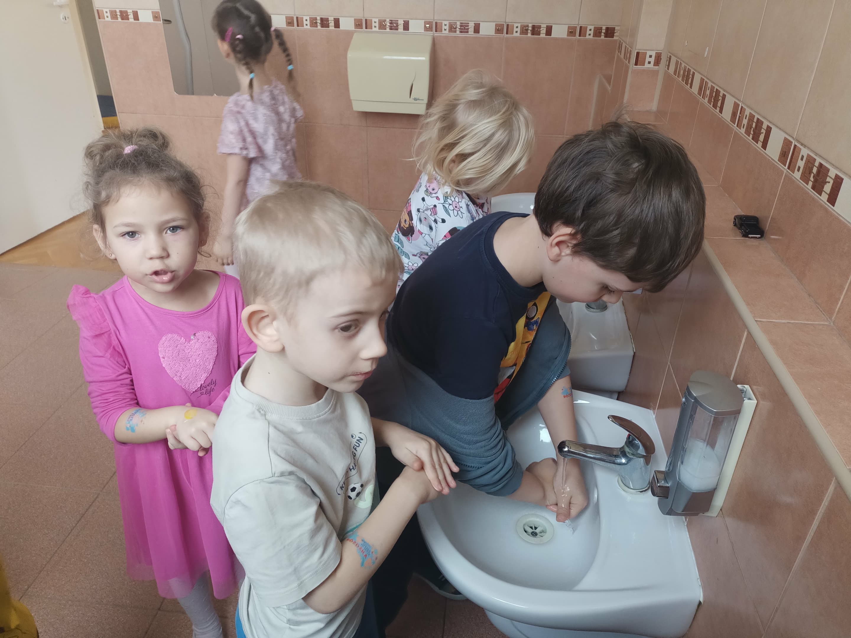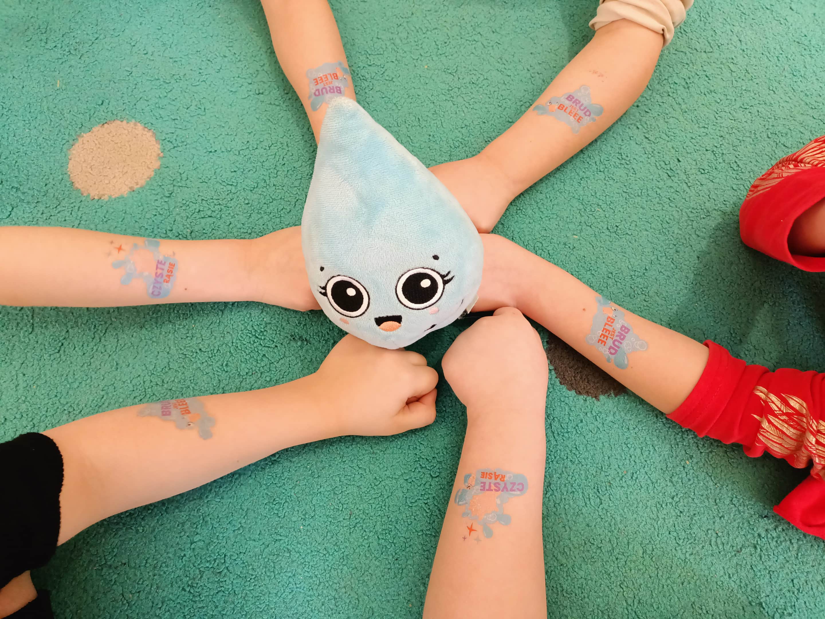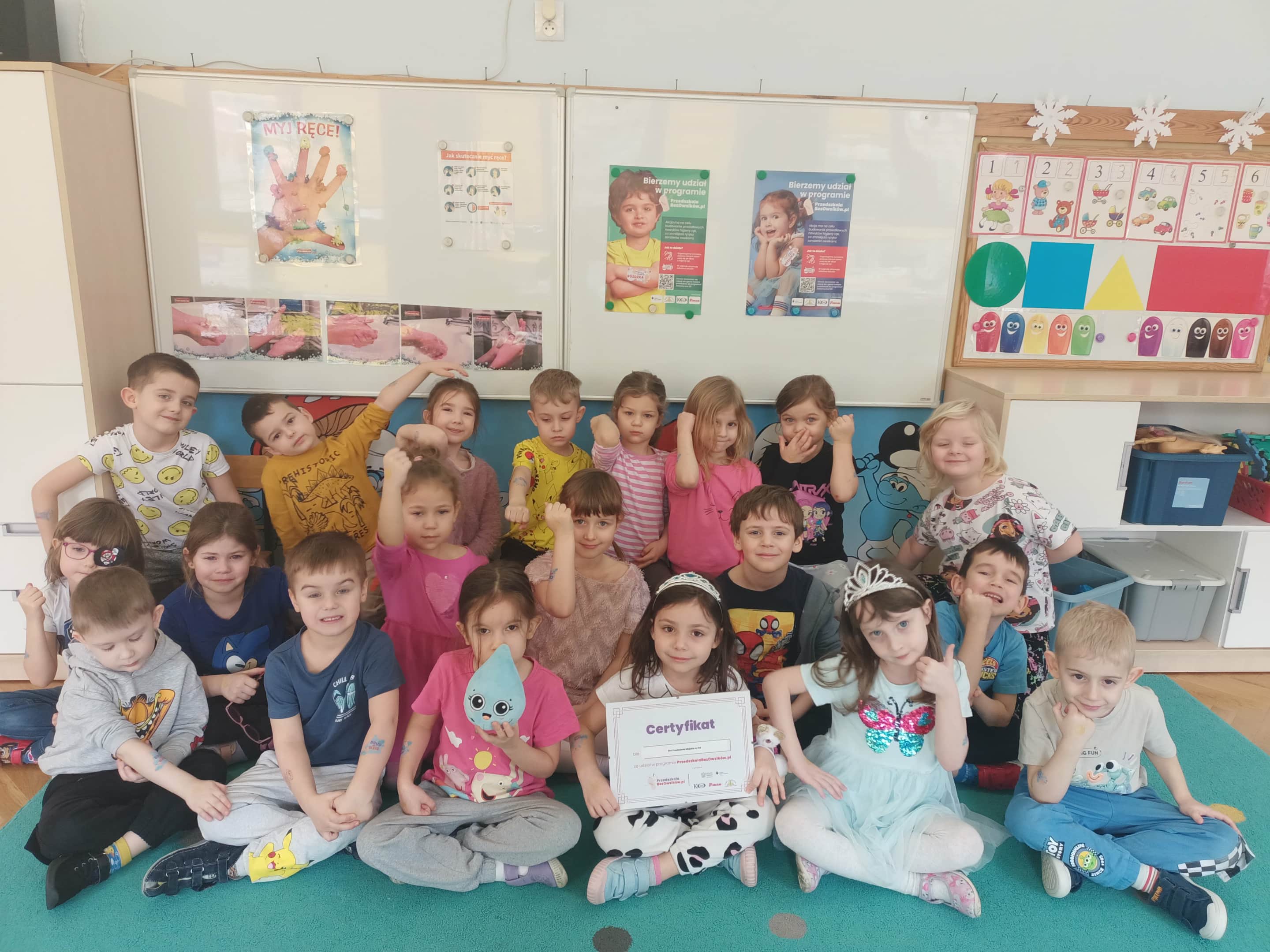 Nasze przedszkole wzięło udział w Programie bez owsików zainicjowany przez firmę POLPHARMA, objęty patronatem przez Fundację IMiD oraz MEN. Dzieci na zajęciach wyjaśniały do czego potrzebne są ręce i kiedy należy je myć. Ustalały jaka jest kolejność wykonywanych czynności podczas mycia rąk. Z wielką ochotą ćwiczyły umiejętność dokładnego mycia rąk. Dowiedziały się co to są owsiki. Utrwalały swoją wiedzę kolorując obrazki. W nagrodę za aktywny udział w zajęciach dzieci otrzymały tatuaże przypominające o dbaniu o higienę rąk.