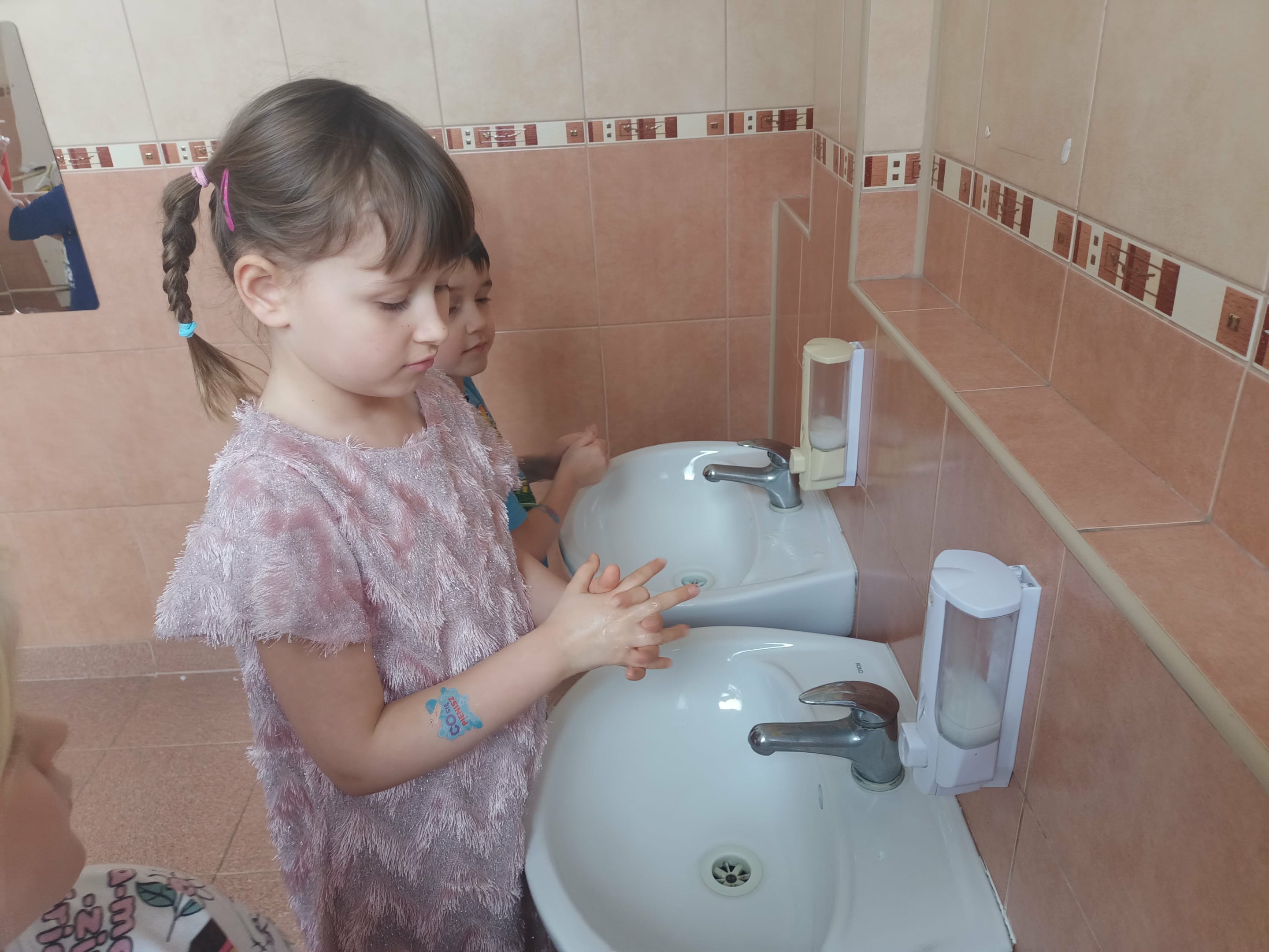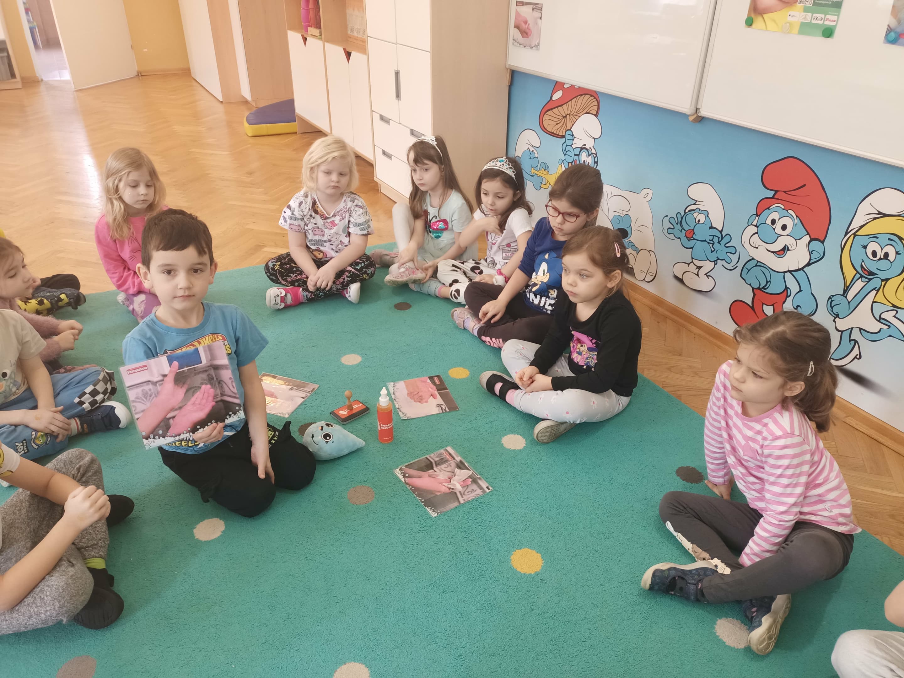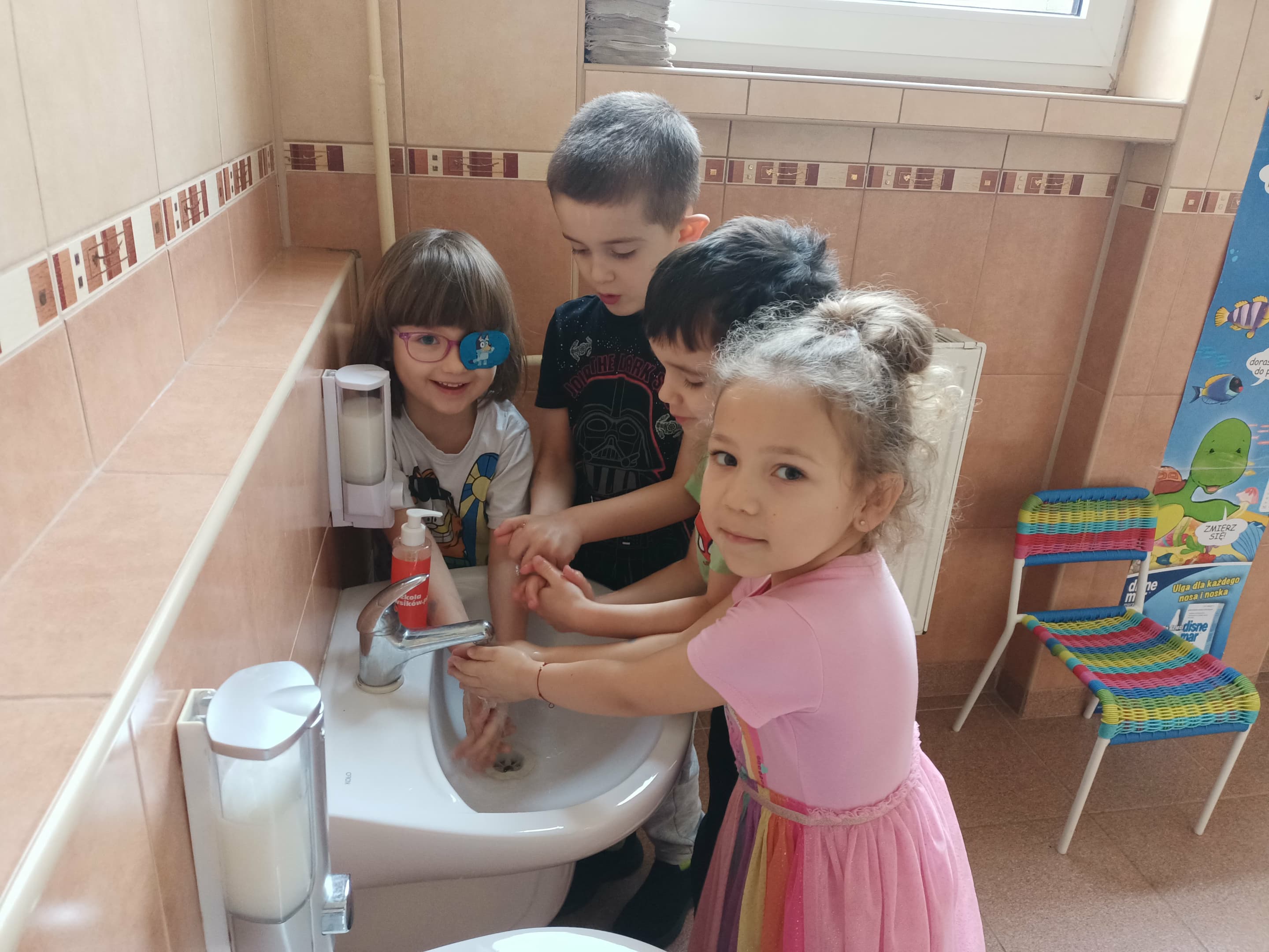 Nasze przedszkole wzięło udział w Programie bez owsików zainicjowany przez firmę POLPHARMA, objęty patronatem przez Fundację IMiD oraz MEN. Dzieci na zajęciach wyjaśniały do czego potrzebne są ręce i kiedy należy je myć. Ustalały jaka jest kolejność wykonywanych czynności podczas mycia rąk. Z wielką ochotą ćwiczyły umiejętność dokładnego mycia rąk. Dowiedziały się co to są owsiki. Utrwalały swoją wiedzę kolorując obrazki. W nagrodę za aktywny udział w zajęciach dzieci otrzymały tatuaże przypominające o dbaniu o higienę rąk.