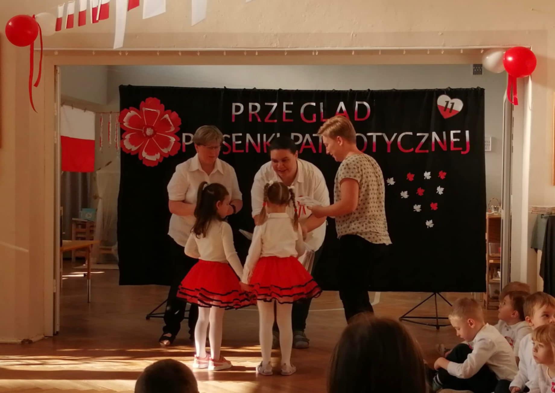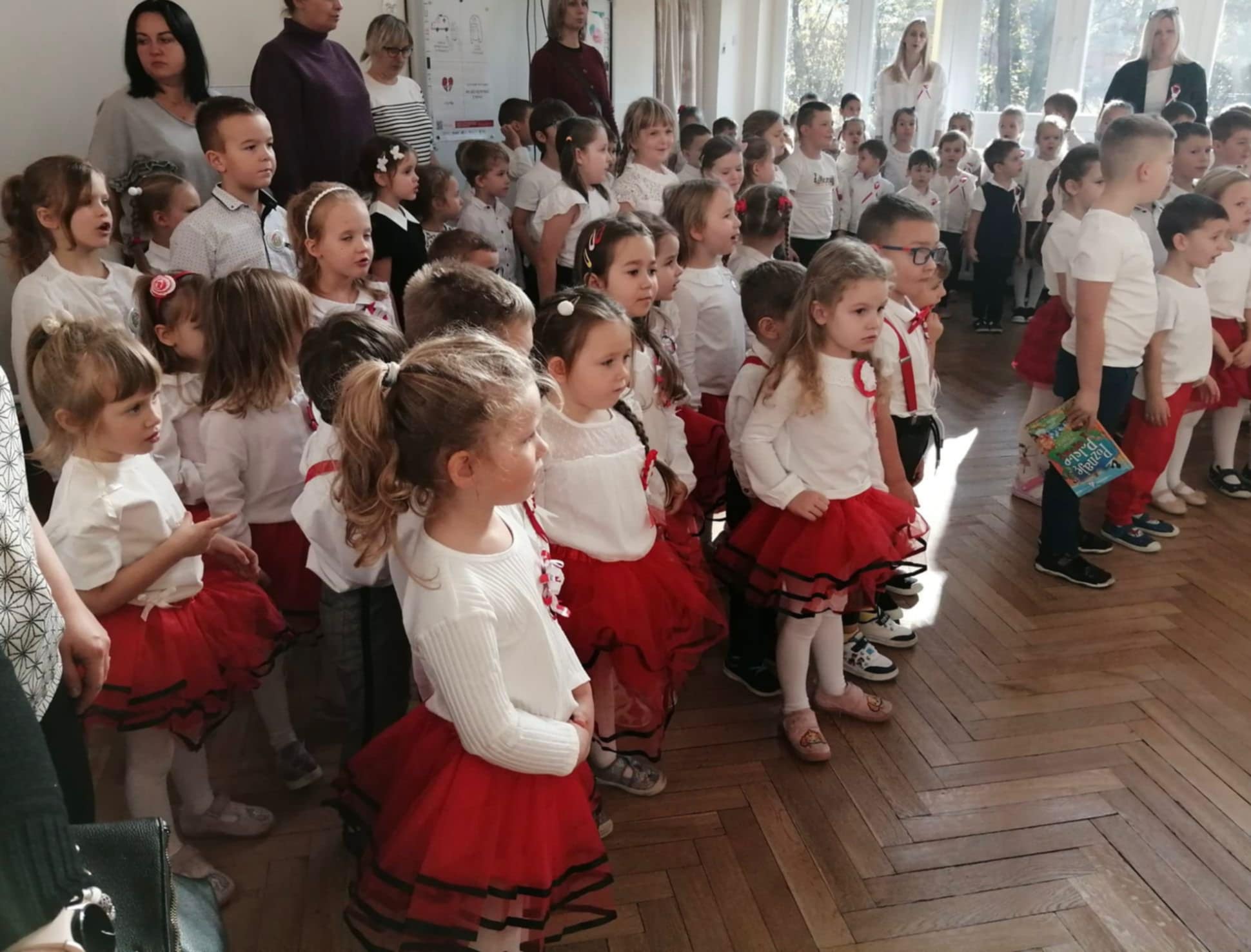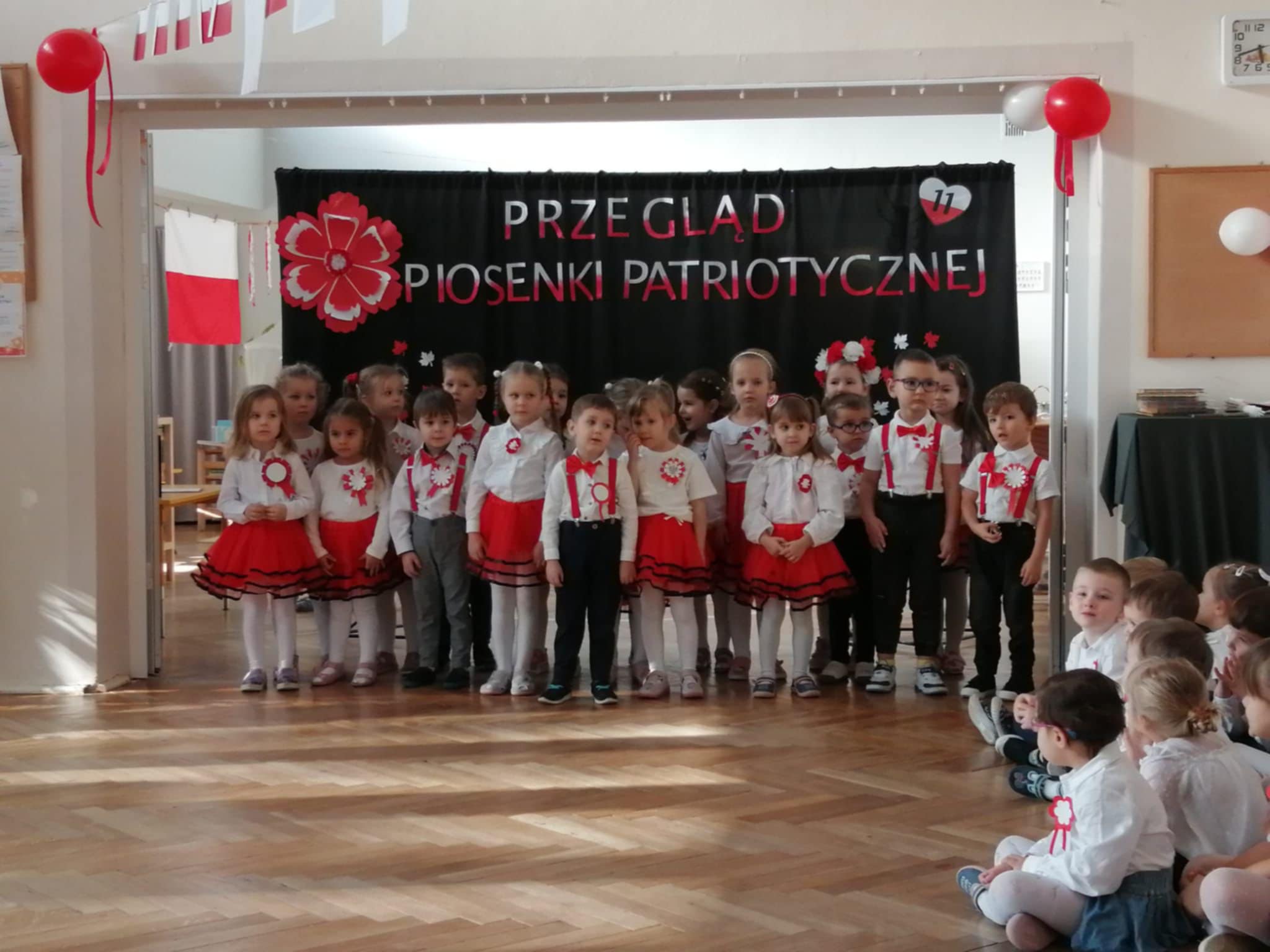 Mali patrioci z naszego przedszkola wzięli udział w Przeglądzie piosenki patriotycznej, zorganizowanym w Przedszkolu nr 118. Zaprezentowali umiejętności wokalne śpiewając piosenkę "Polak mały".