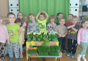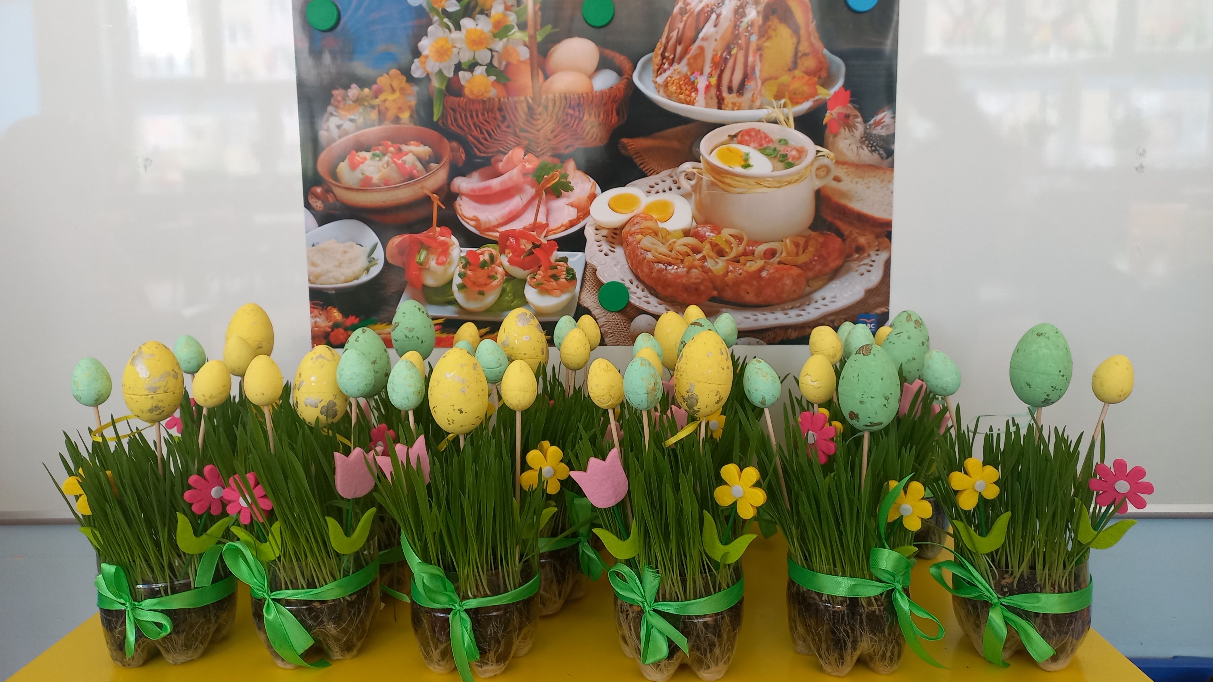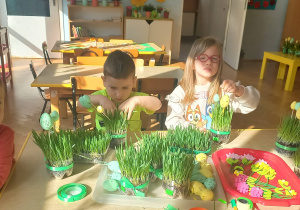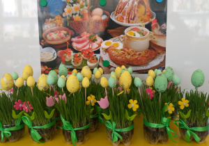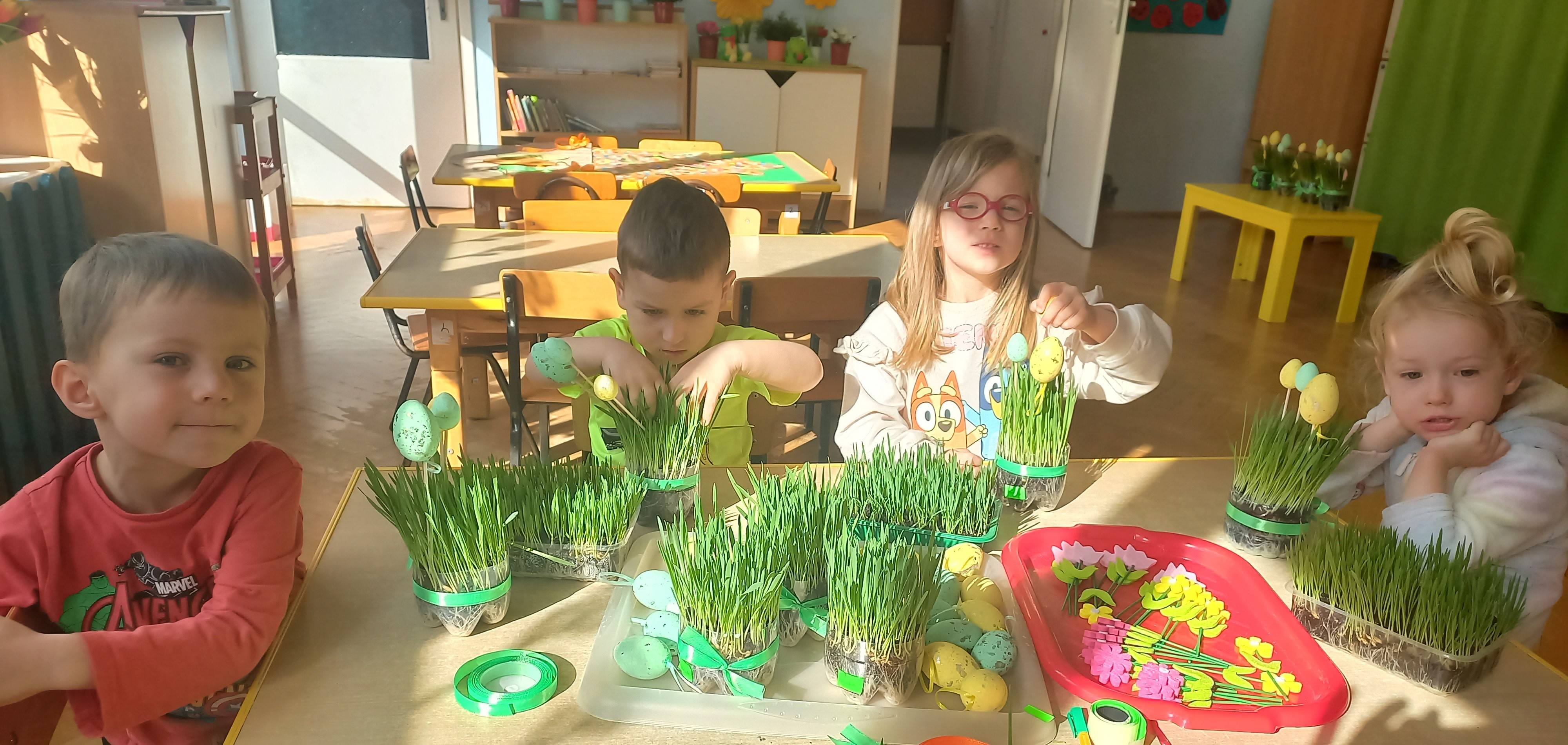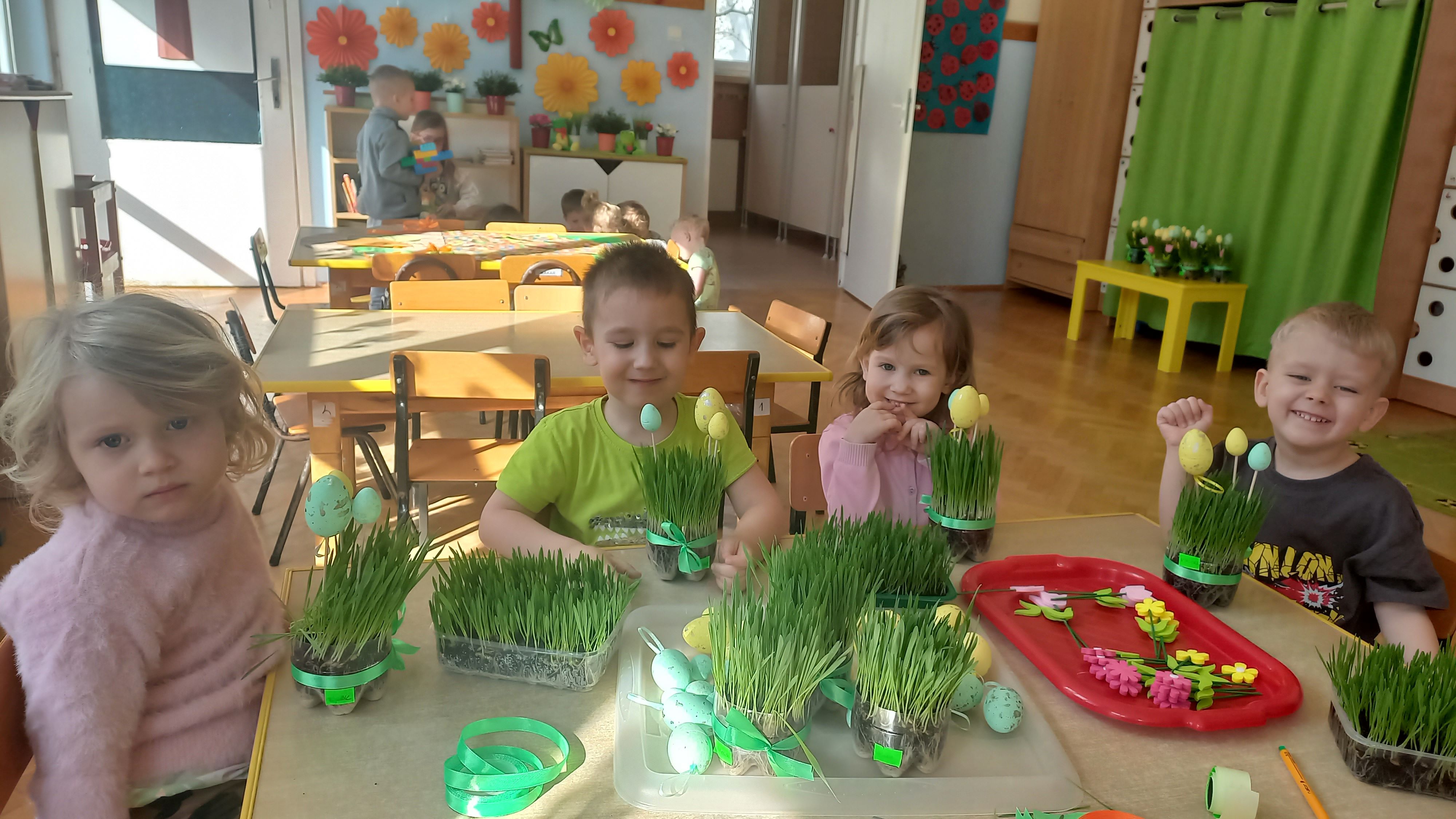 Owies, który tak pięknie wyrósł posłużył nam do wykonania świątecznych stroików. Oprócz stroików zrobiliśmy jeszcze wspólną pracę plastyczną z jajkami w kropki. Jesteśmy już gotowi na nadejście świąt.