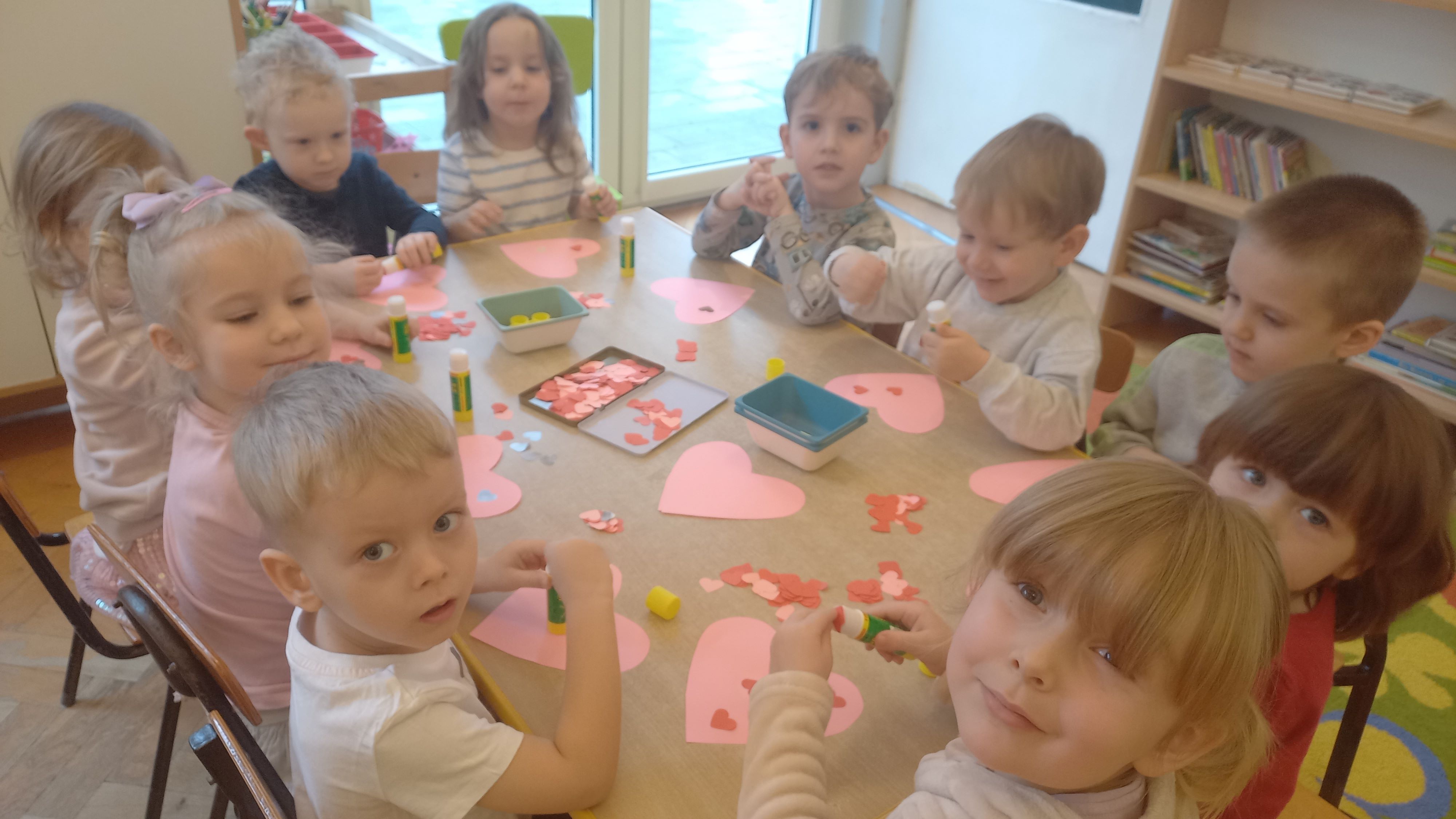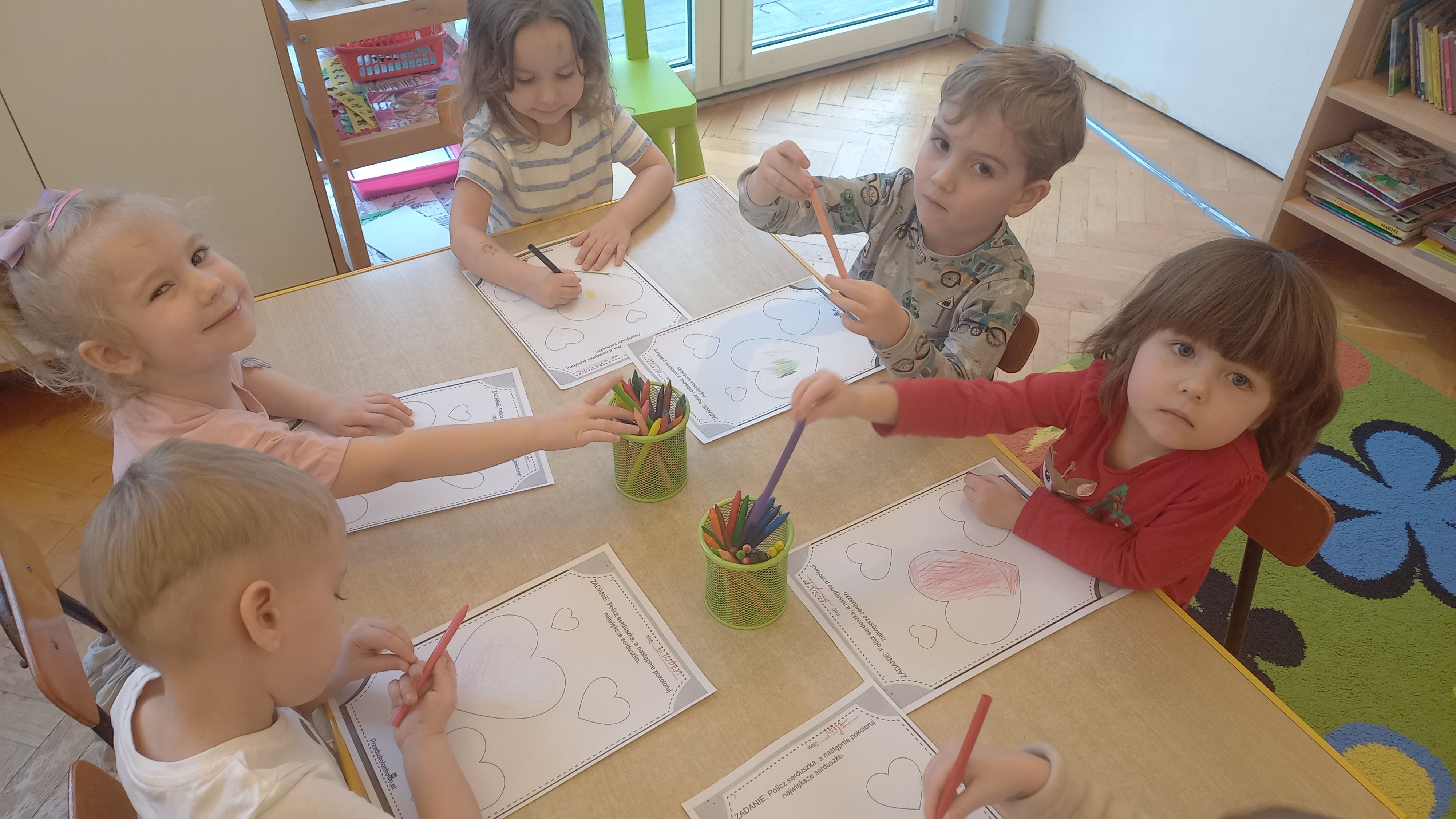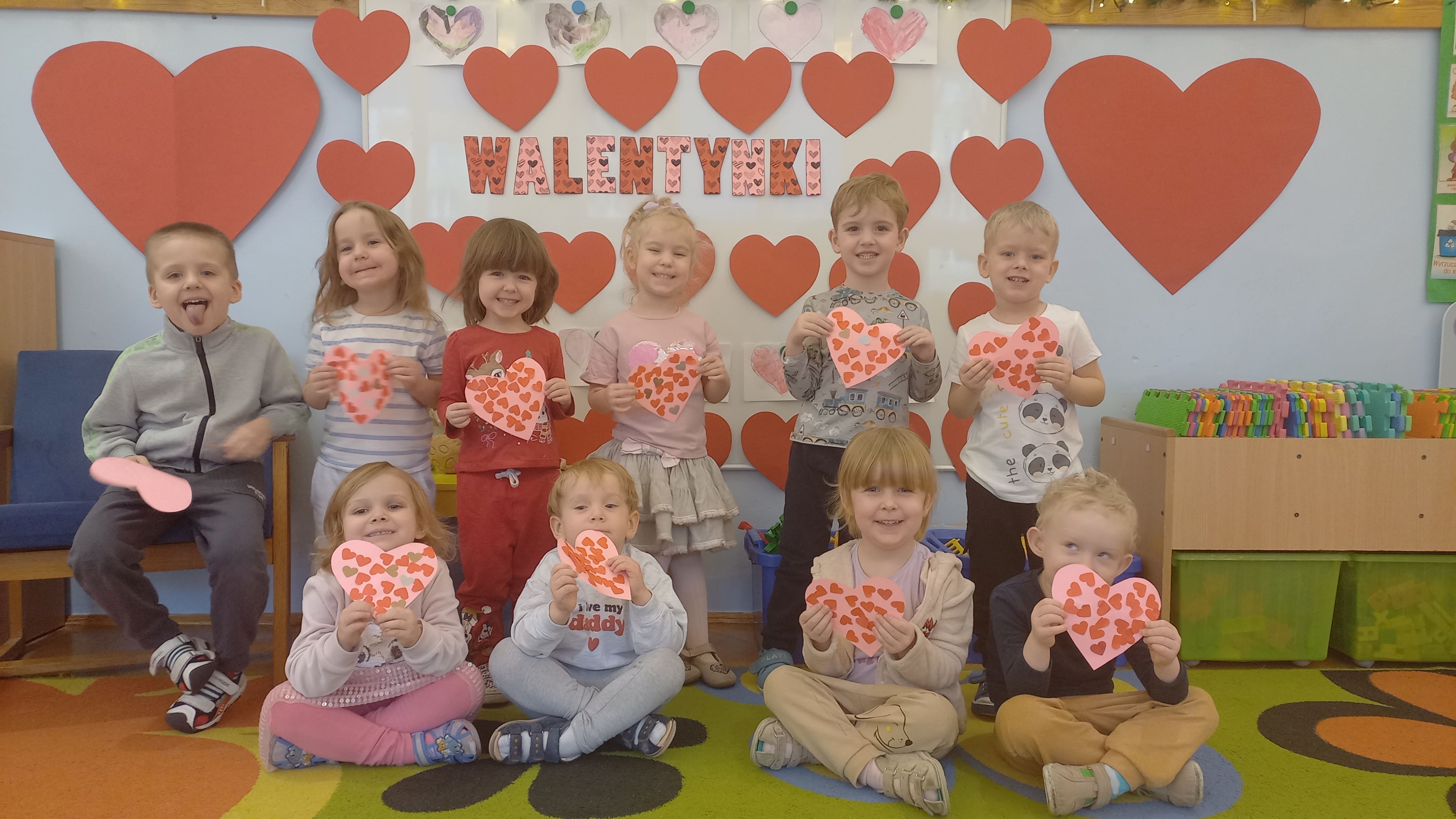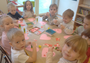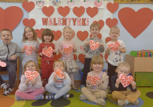 Walentynki to święto miłości i przyjaźni. Dzieci dowiedziały się, że ważne jest okazywanie uczuć, przyjaźń i sympatia w stosunku do innych ludzi. Dzieci uczestniczyły we wspólnych zabawach takich jak przeliczanie kółek na serduszkach, składanie pociętych serc oraz zabawa ruchowa z przenoszeniem serduszek do obręczy. Wykonały ciekawe walentynki dla rodziców i karty pracy gdzie poleceniem było – pokoloruj największe serce. Był to dzień pełen zabawy i miłych wrażeń.