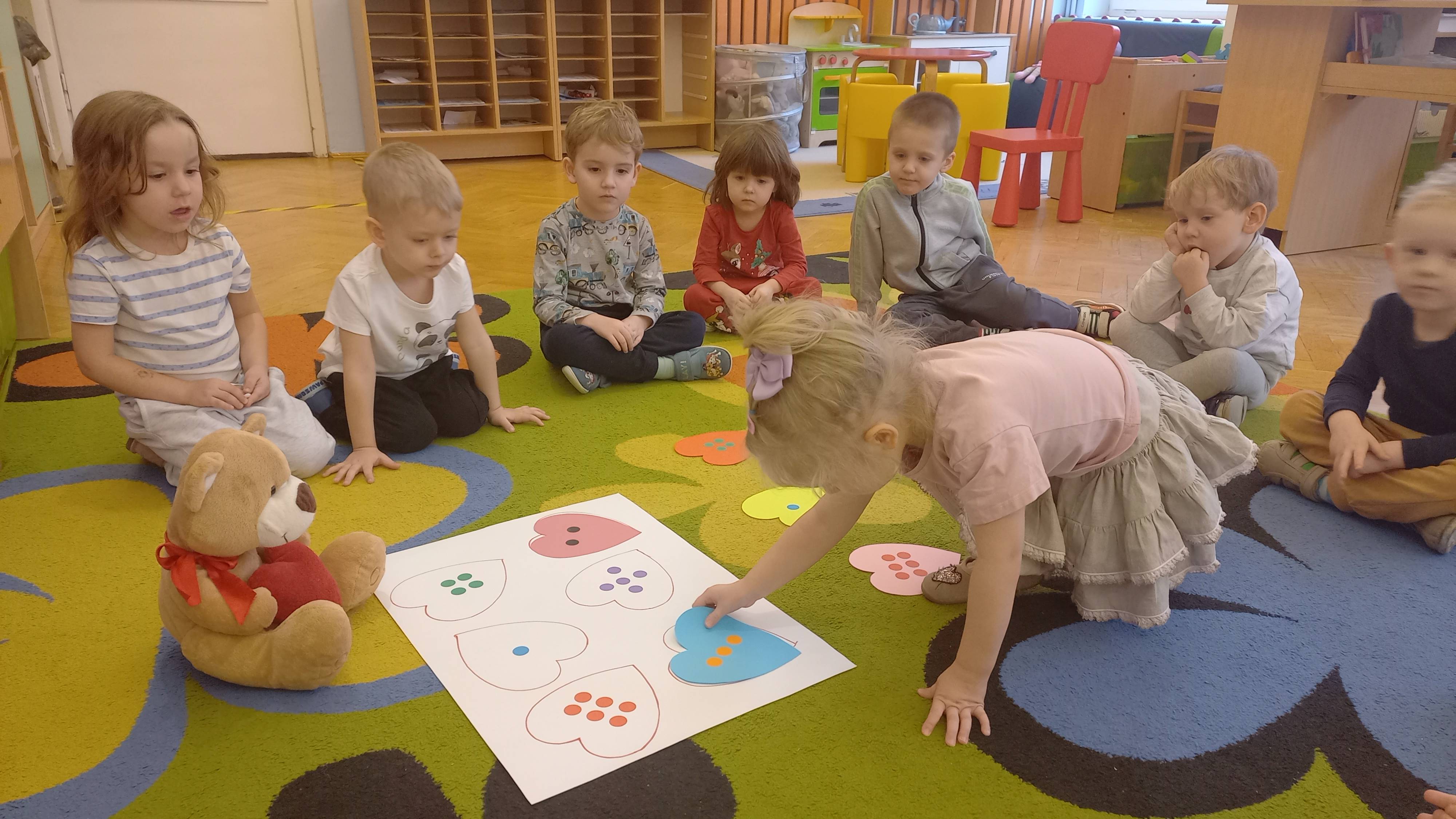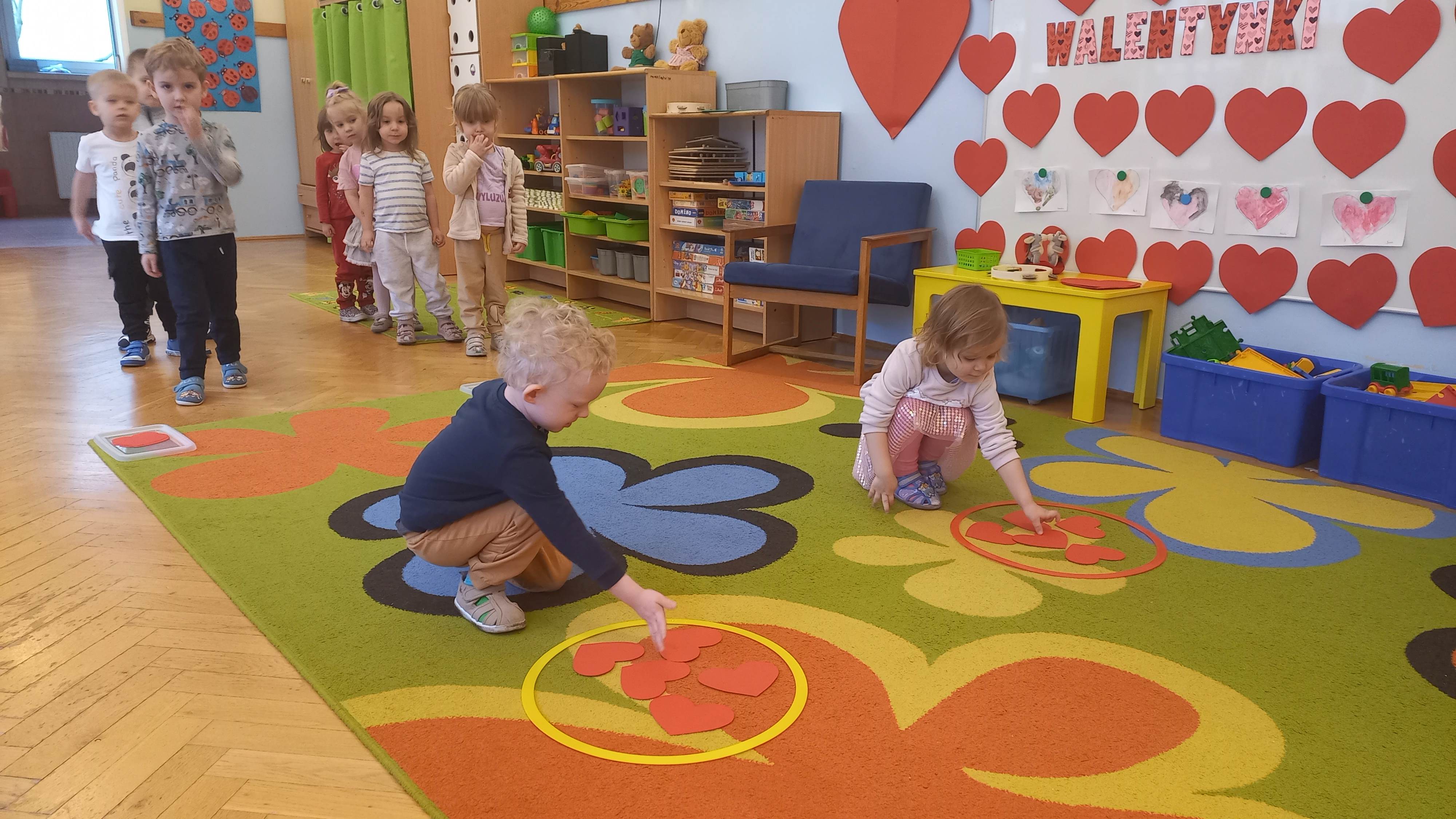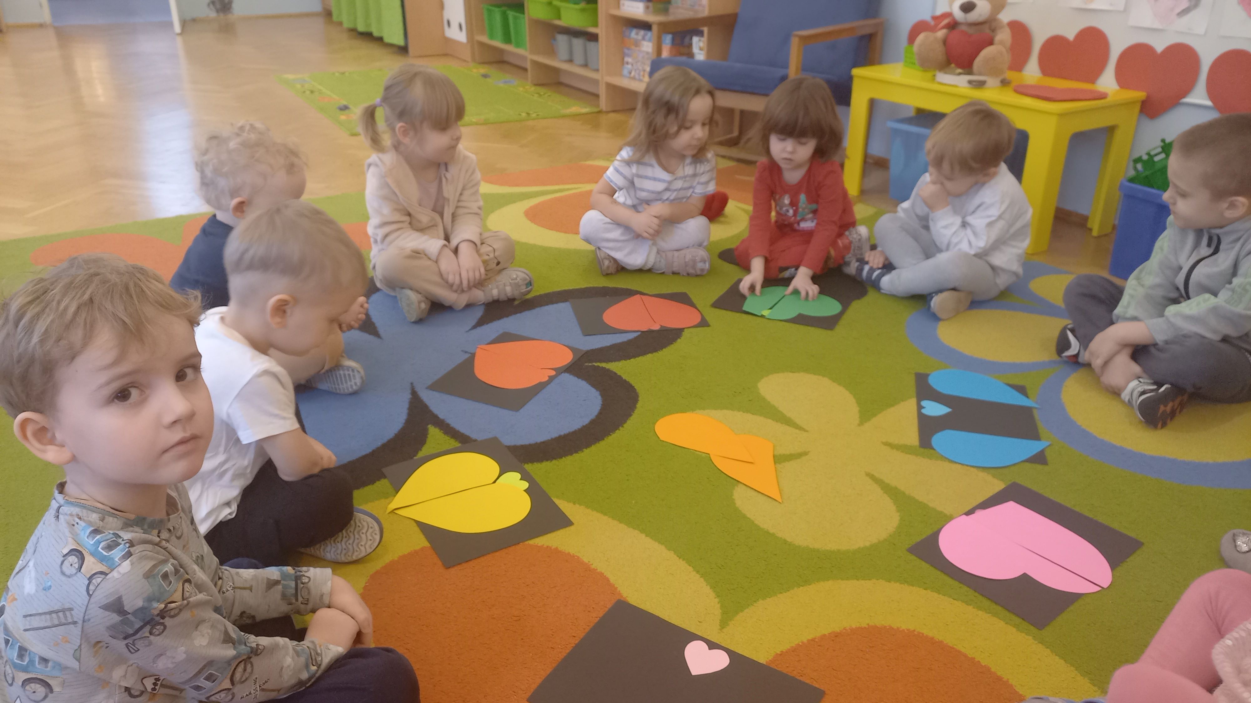 Walentynki to święto miłości i przyjaźni. Dzieci dowiedziały się, że ważne jest okazywanie uczuć, przyjaźń i sympatia w stosunku do innych ludzi. Dzieci uczestniczyły we wspólnych zabawach takich jak przeliczanie kółek na serduszkach, składanie pociętych serc oraz zabawa ruchowa z przenoszeniem serduszek do obręczy. Wykonały ciekawe walentynki dla rodziców i karty pracy gdzie poleceniem było – pokoloruj największe serce. Był to dzień pełen zabawy i miłych wrażeń.