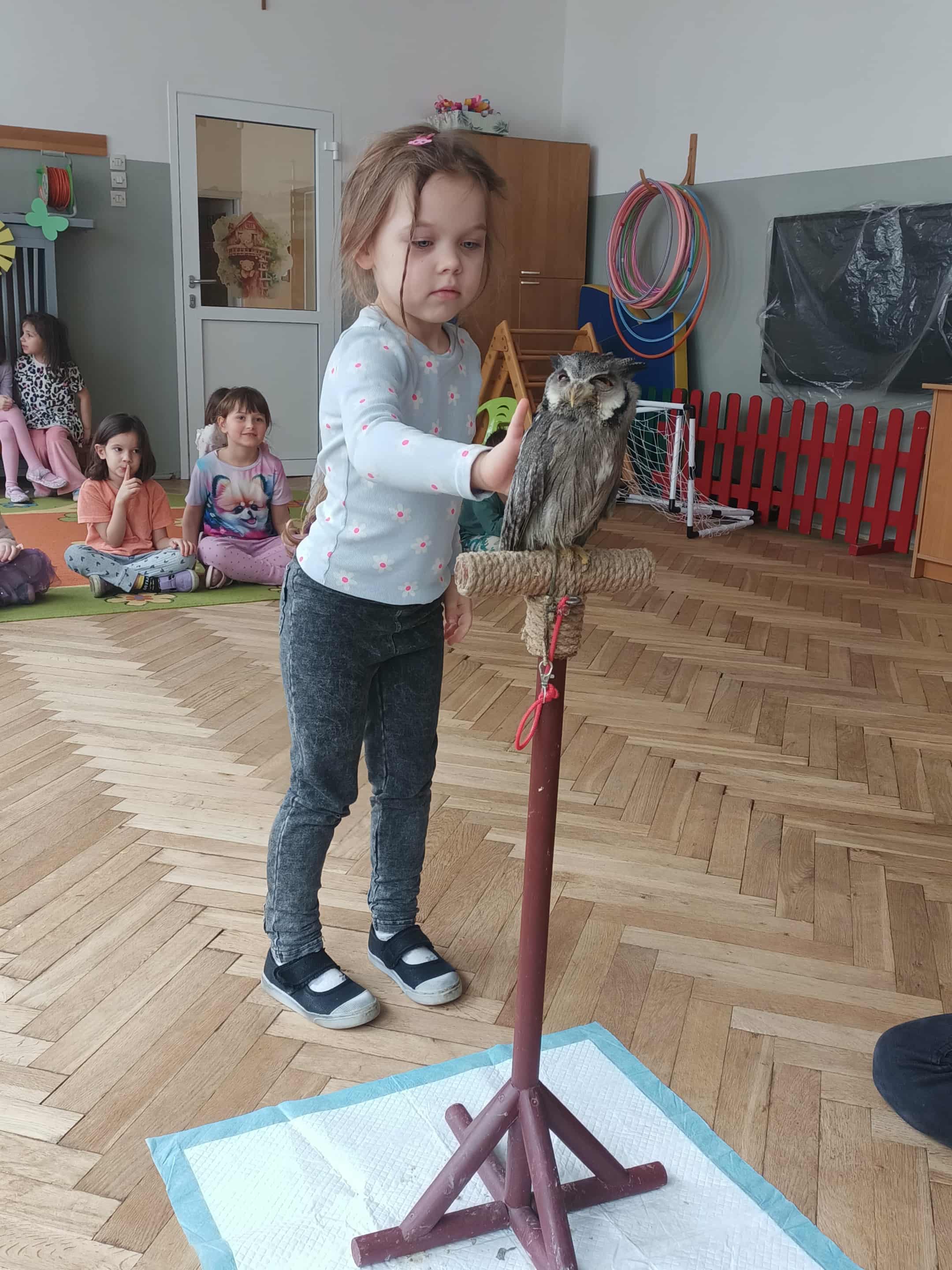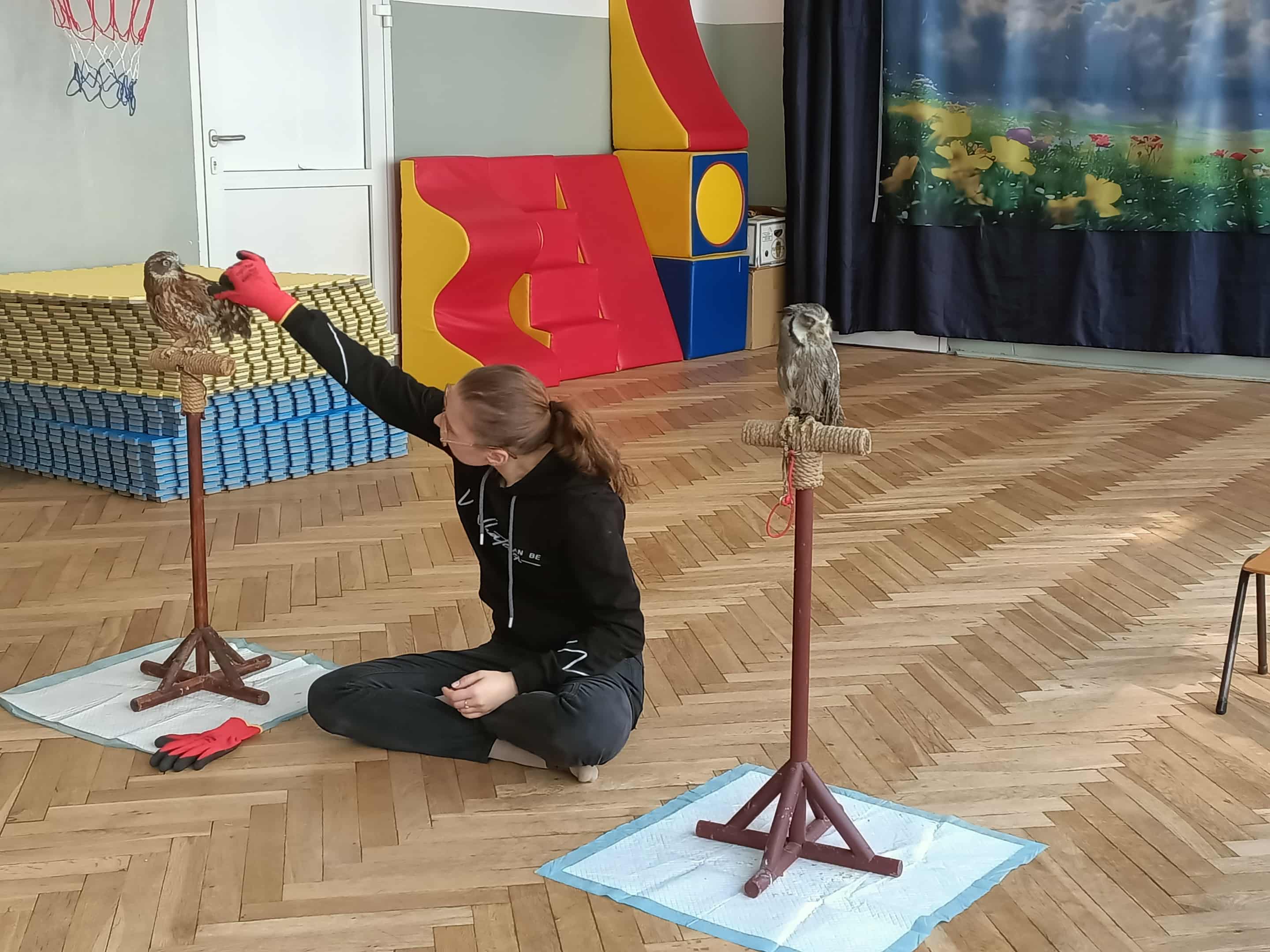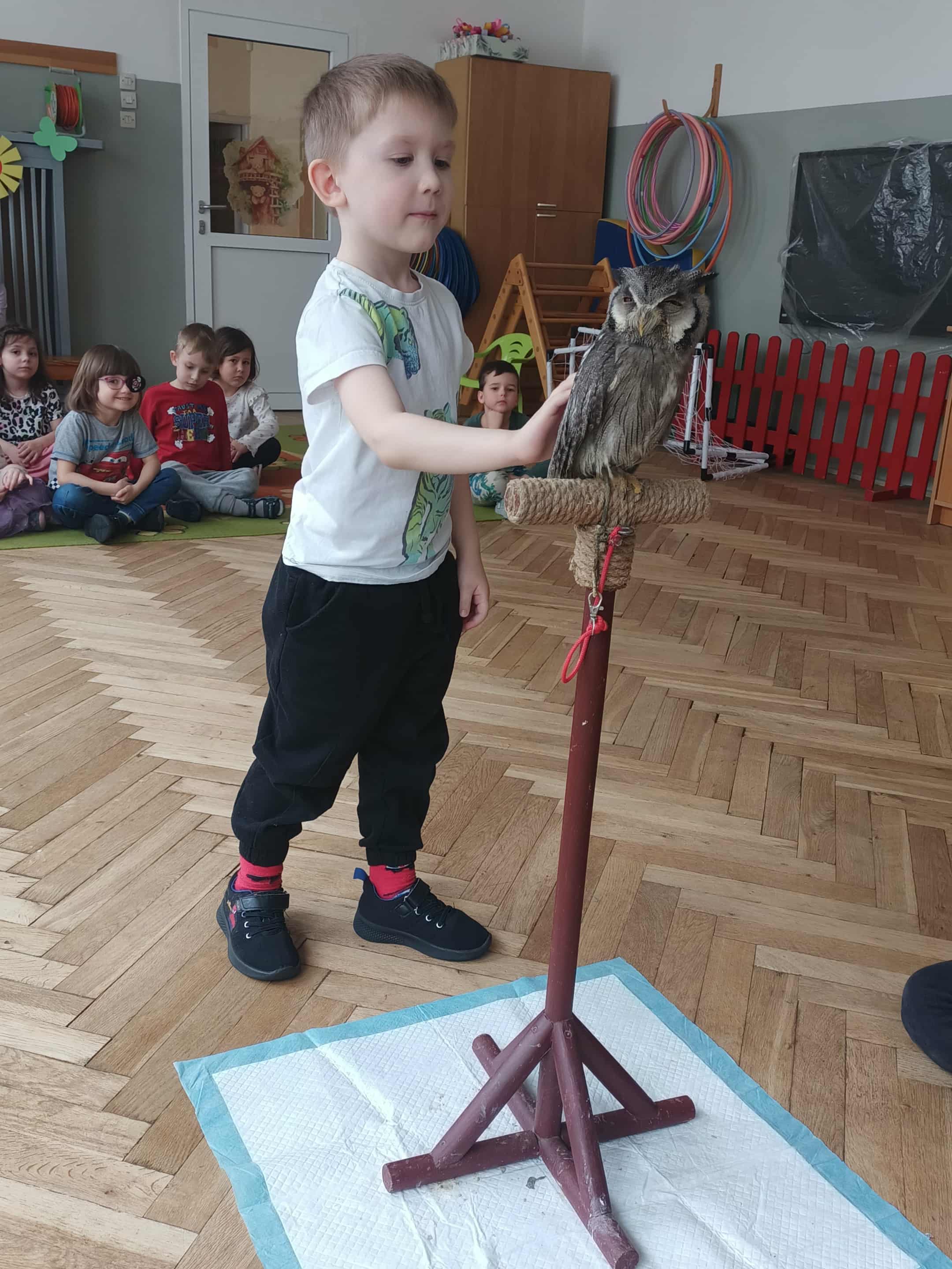 Na warsztatach przyrodniczych gościliśmy 2 sowy: dzienną i nocną. Porównywaliśmy ich wygląd. Poznaliśmy budowę tych ptaków i znaczenie upierzenia. Dowiedzieliśmy się czym się żywią. Każdy miał okazję sprawdzić jak miłe w dotyku jest upierzenie sów.
