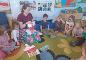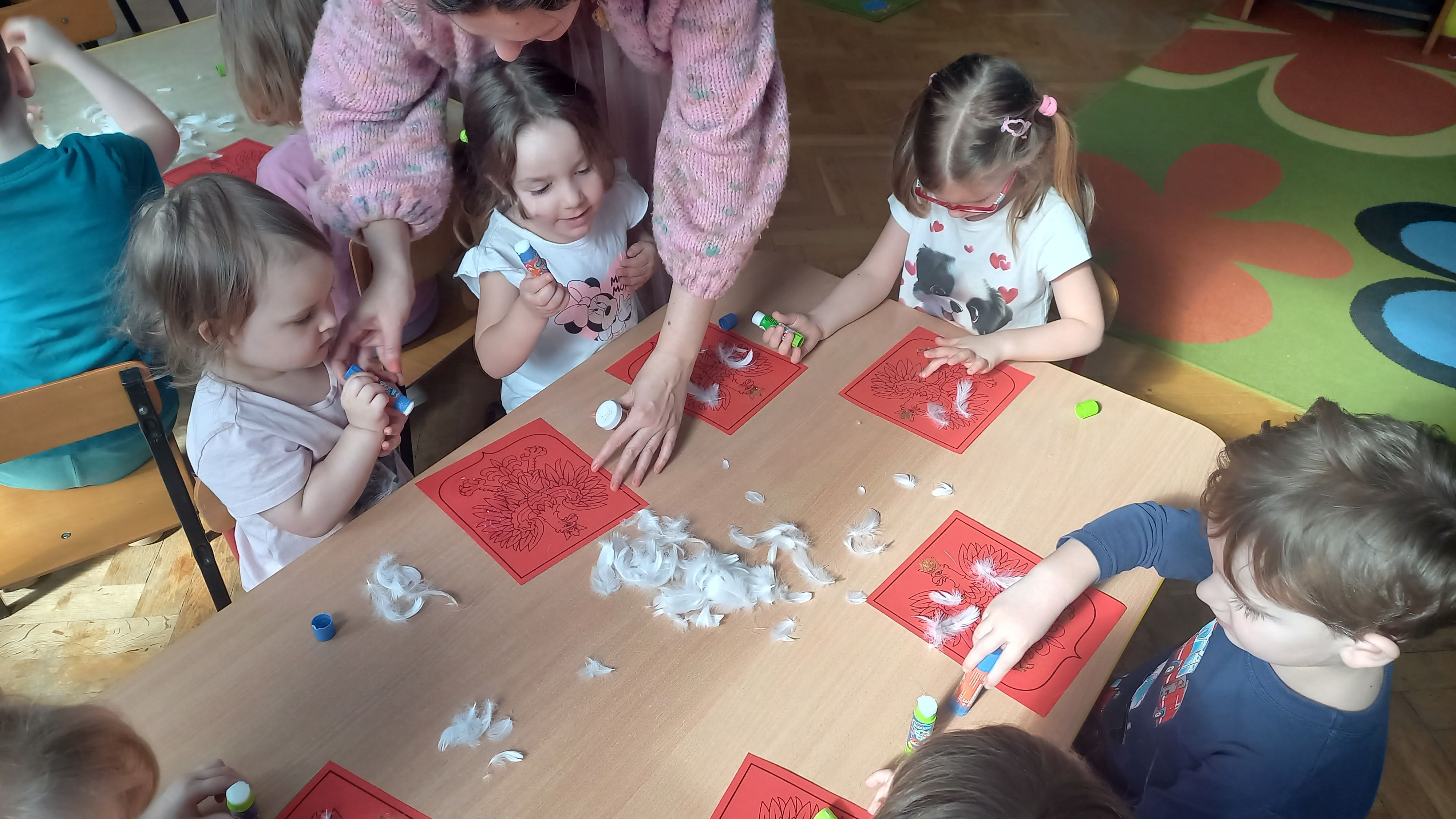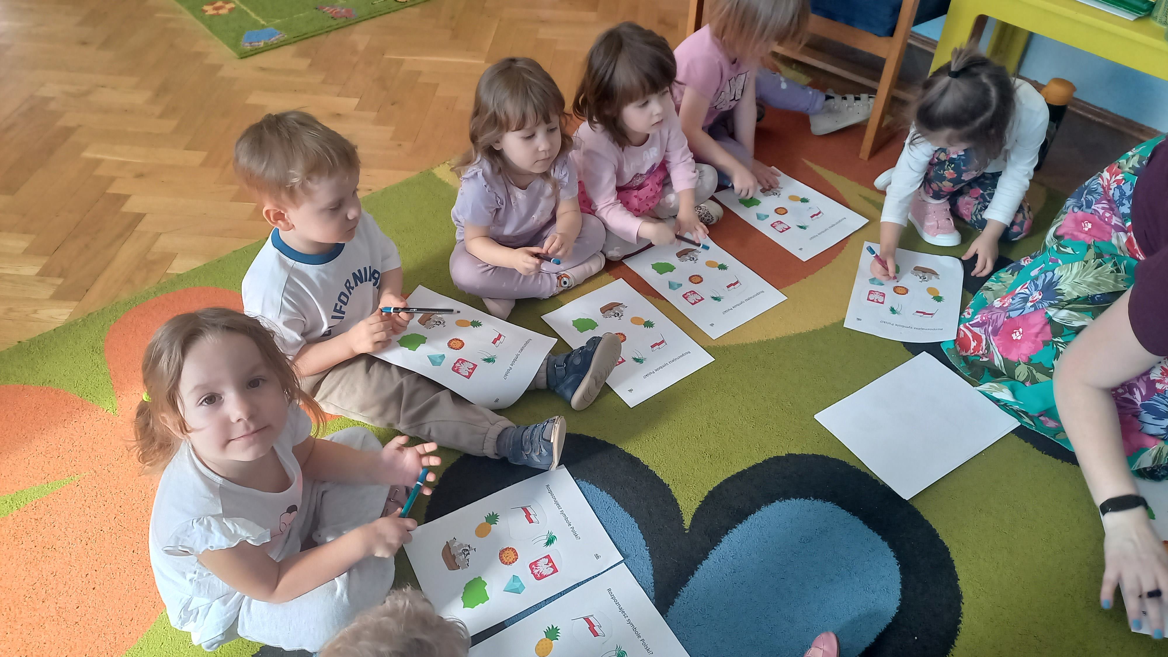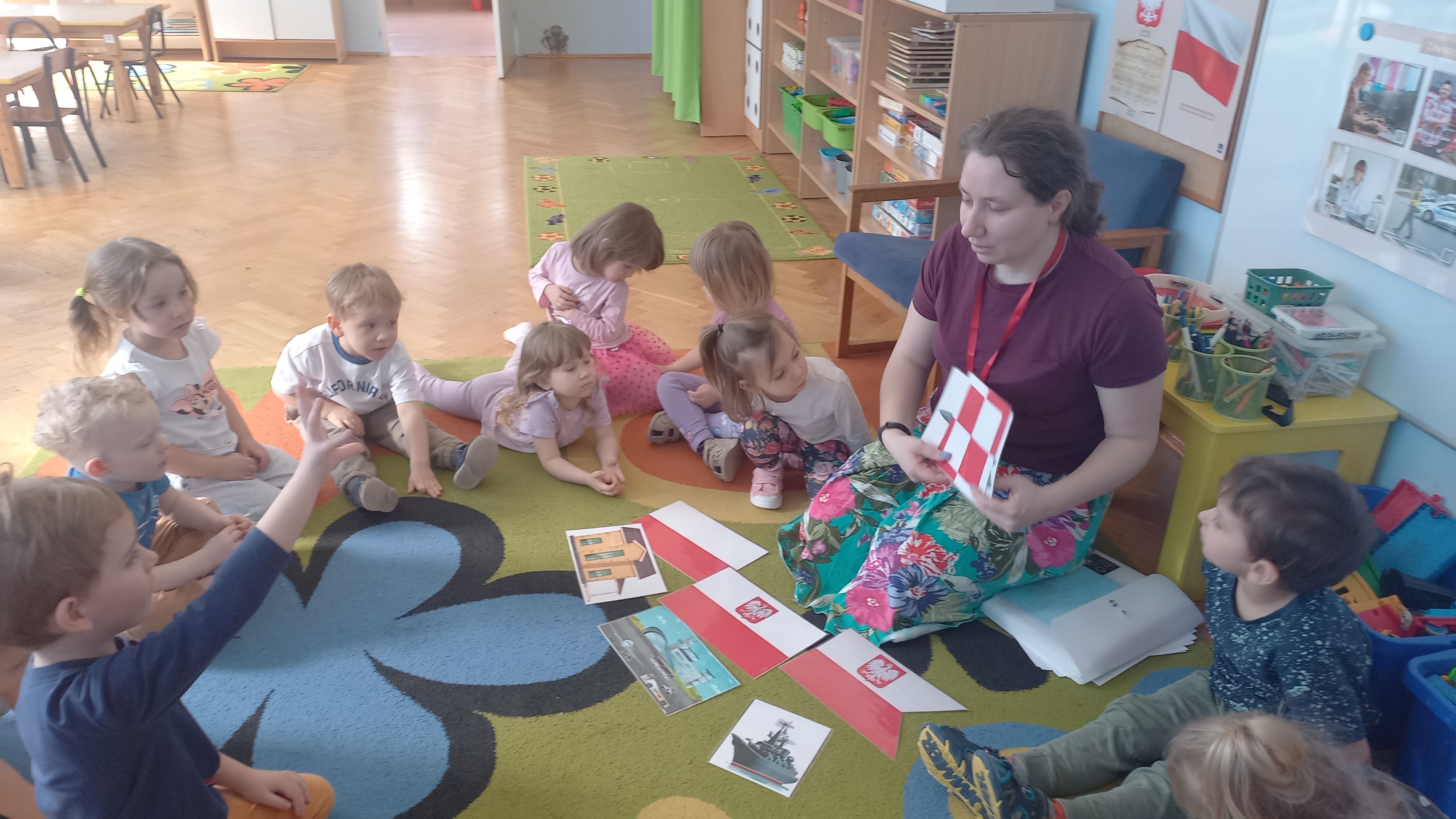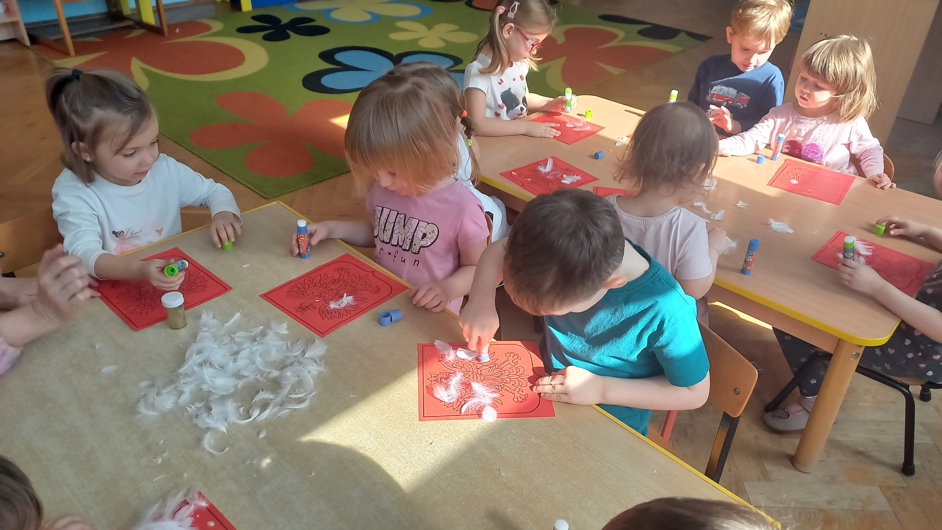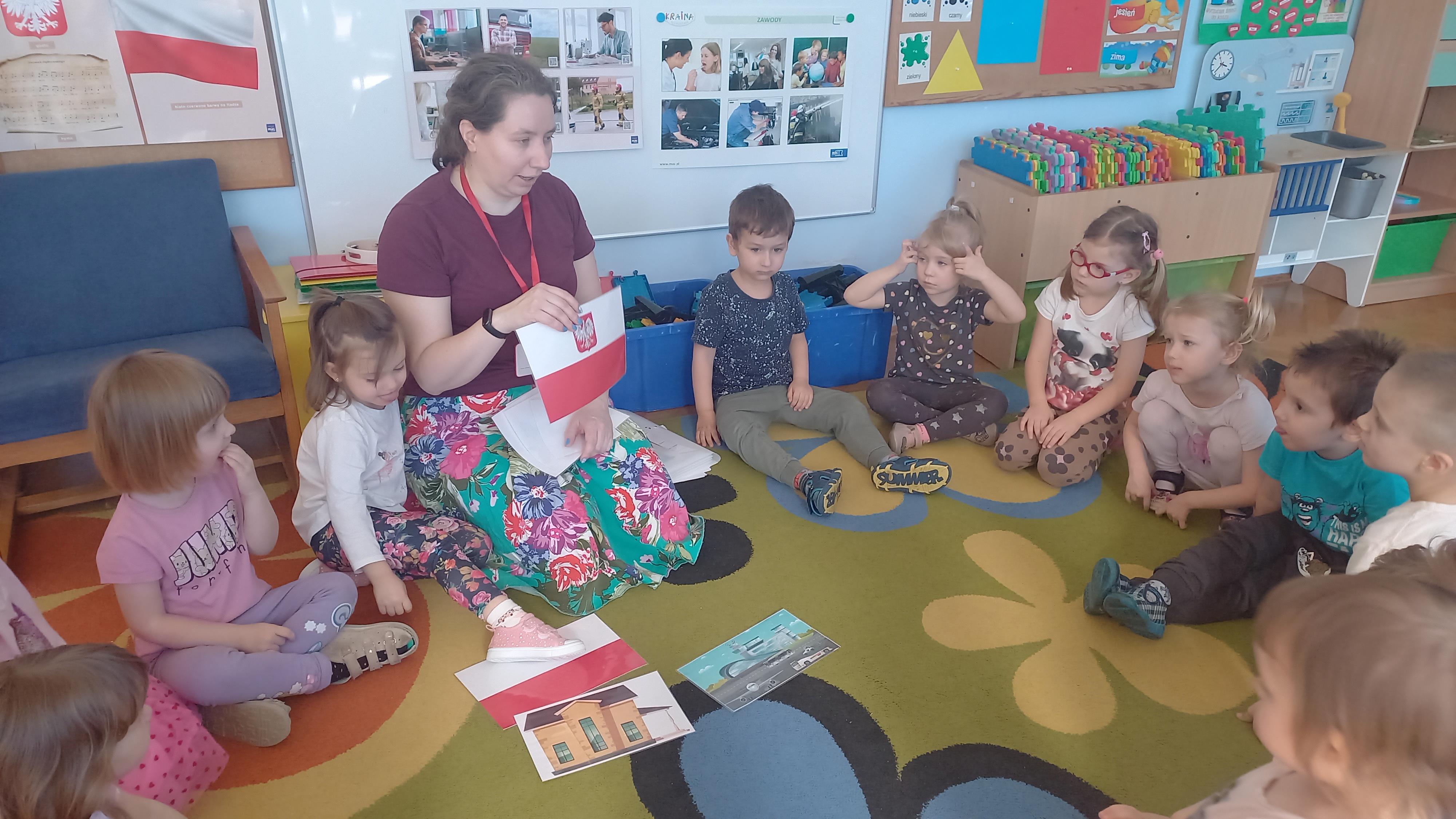 Warsztaty regionalne „A to właśnie Polska” W czasie warsztatów dzieci miały okazję pogłębić swoją wiedzę o symbolach narodowych, oglądały flagi Polski, które różniły się w zależności od ich umiejscowienia. Wybierały i zakreślały flagę i godło Polski a na zakończenie wykonały orła z białych piór. Warsztaty bardzo podobały się dzieciom.