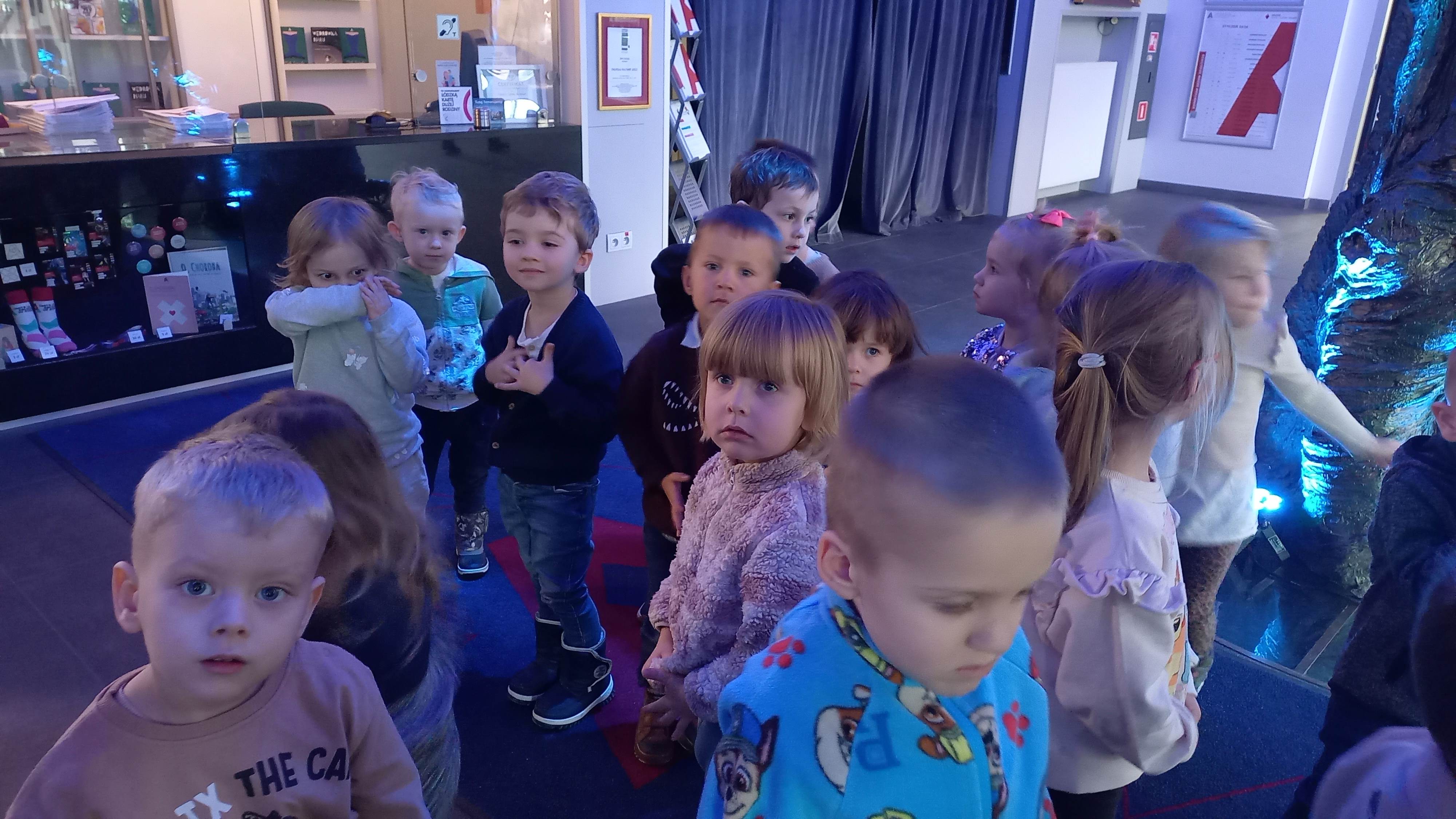 W dniu 15 stycznia wybraliśmy się autokarem do Teatru Arlekin na przedstawienie „Złota Rybka”. Poznaliśmy budynek teatru, scenę, aktorów i lalki. W holu teatru znajdowało się „magiczne drzewo”. Z wielkim zaciekawieniem oglądaliśmy bajkę o Złotej Rybce, na zakończenie aktorów nagrodziliśmy gromkimi brawami. Uczyliśmy się kulturalnych zachowań w miejscach publicznych i bezpiecznego podróżowania autokarem. Dla wielu małych przedszkolaków była to pierwsza wizyta w teatrze, która okazała się dużym przeżyciem. Już czekają na kolejną wycieczkę.